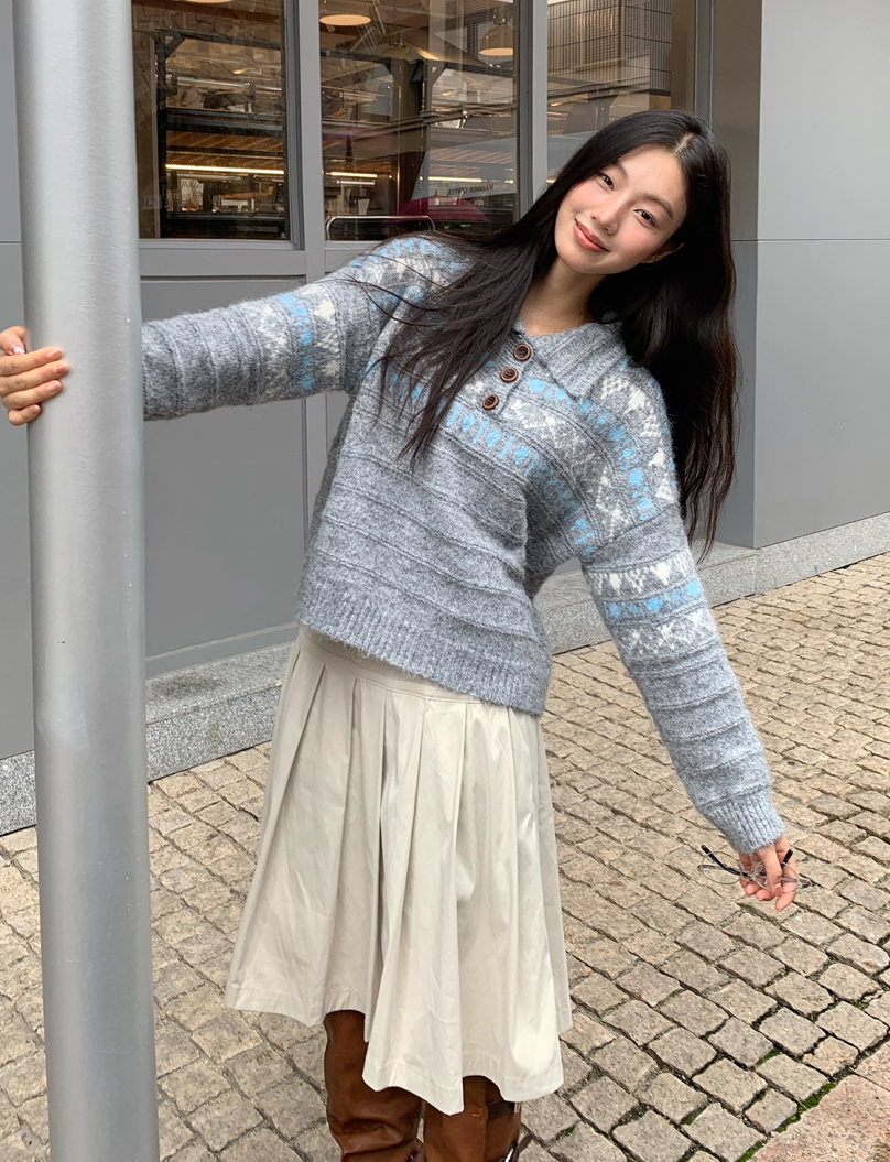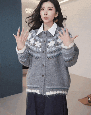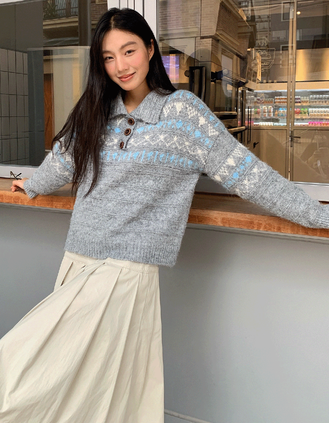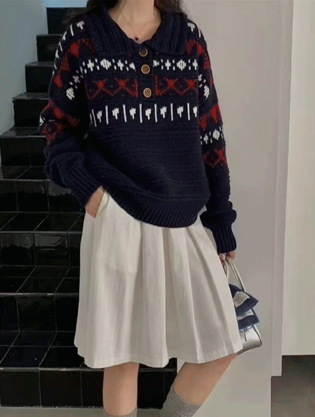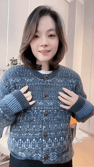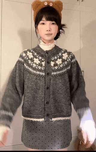 专门为 “减龄党” 设计的一款,时髦的 Polo 翻领,搭配细腻的费尔岛提花,瞬间把文艺少女感拉满。