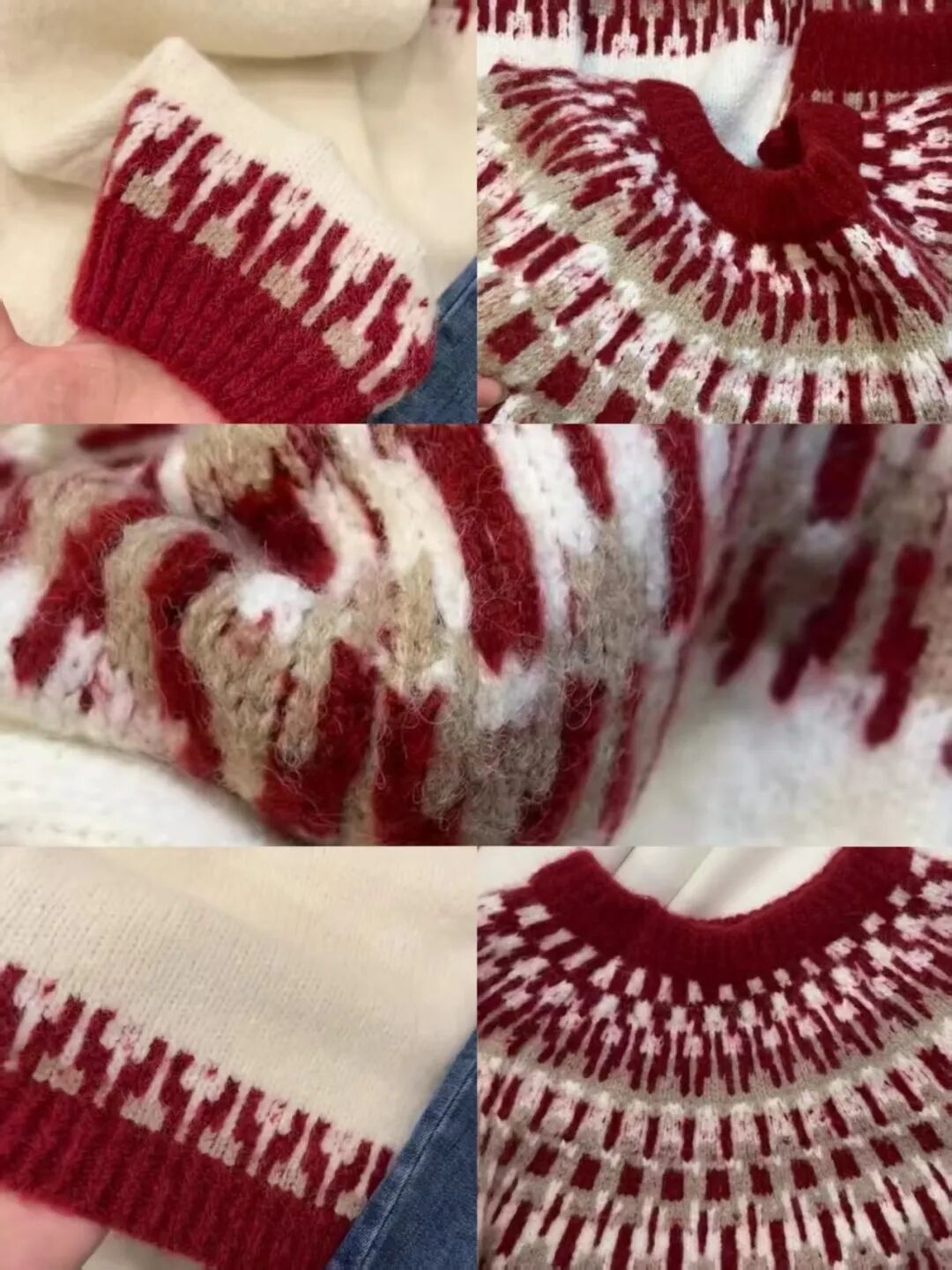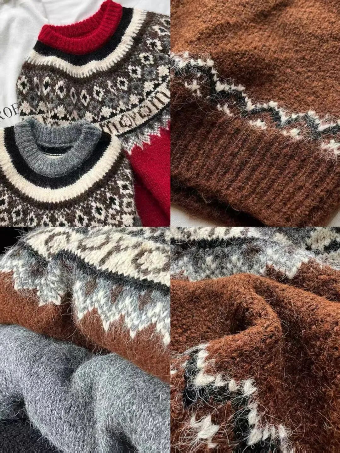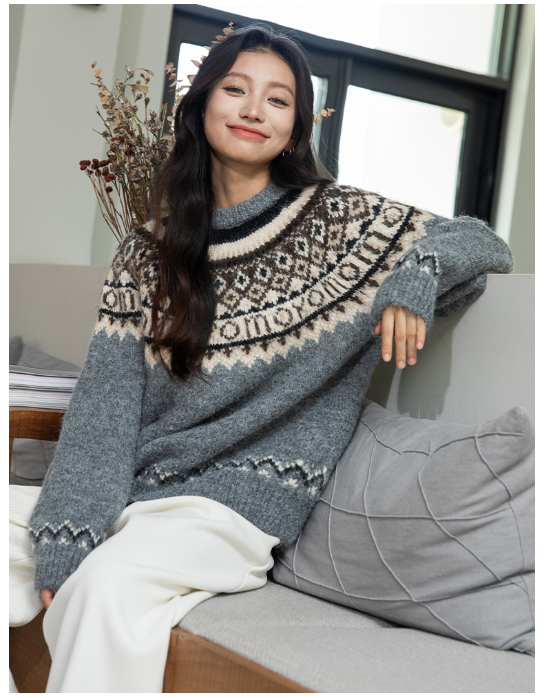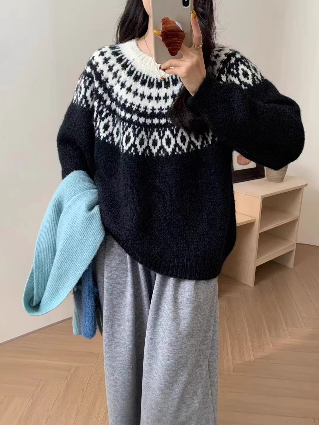 ⑥慵懒风复古几何图费尔岛套头针织毛衣J1046