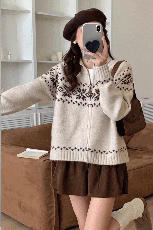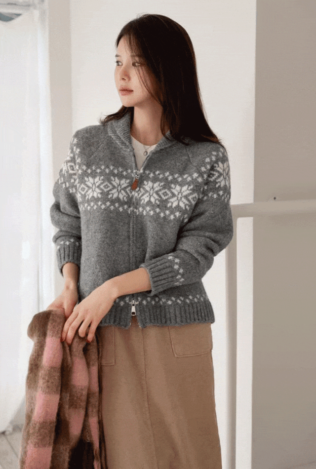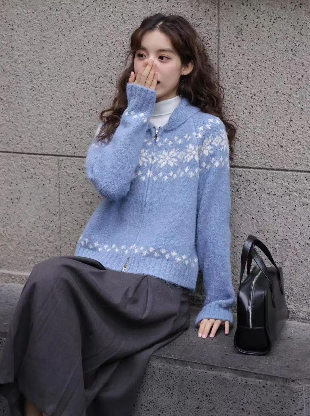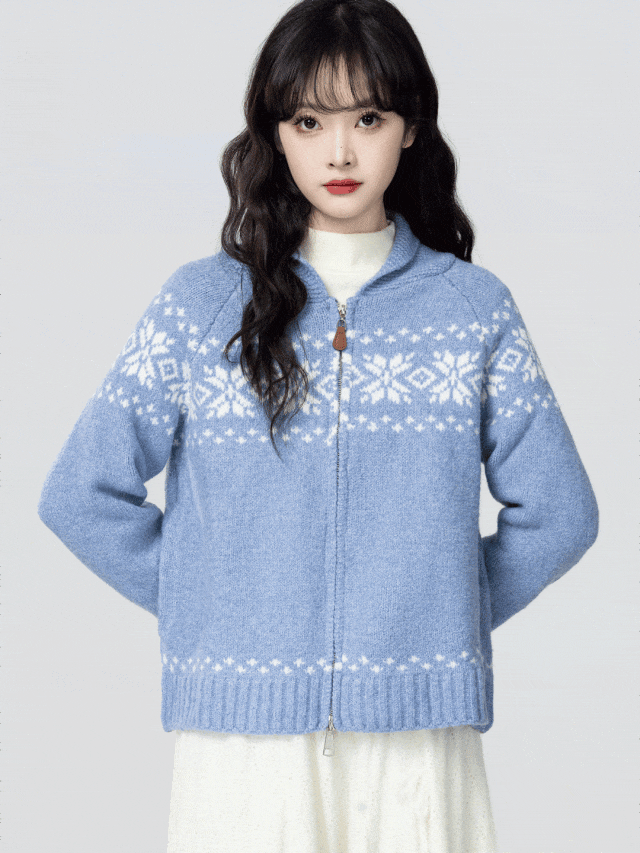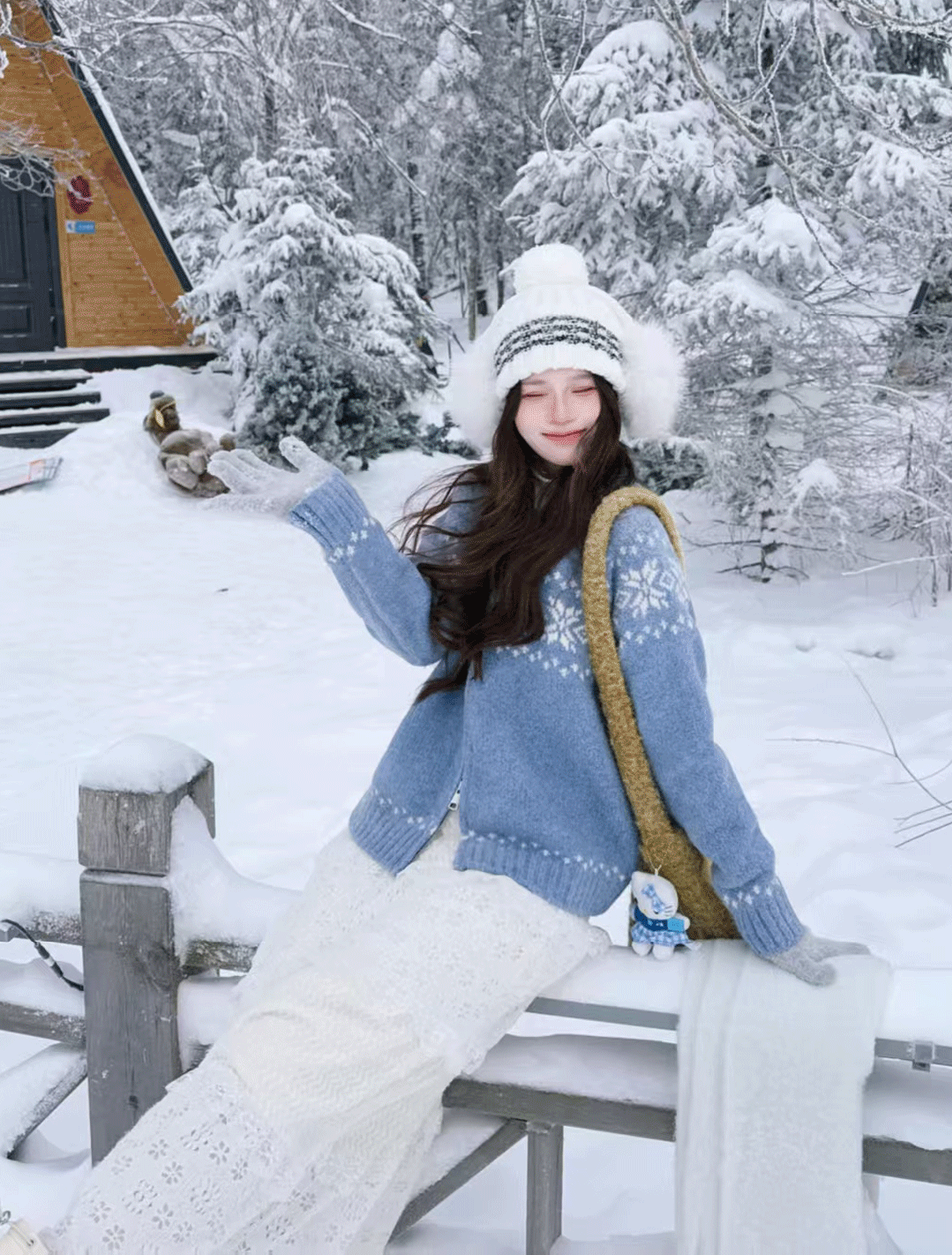 精致的重工雪花图案,搭配清新的几何纹路,像是把北欧的冬日雪景织进了毛衣里,配色高级又治愈。
