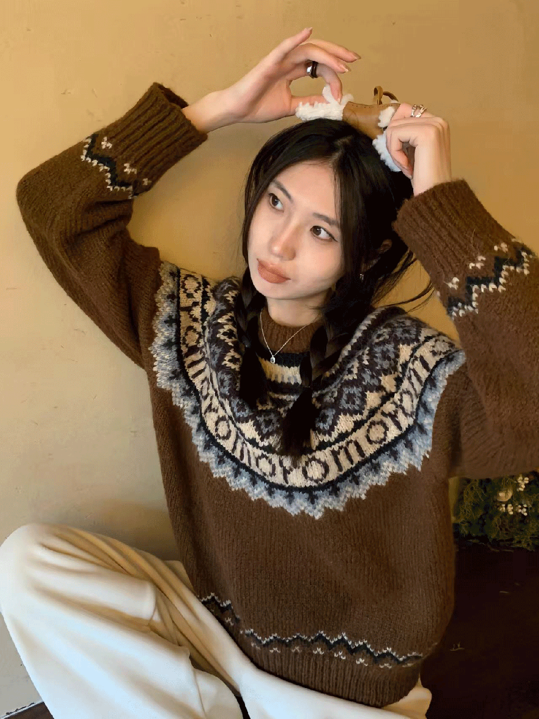 1 | 复古提花针织费尔岛毛衣,满满秋冬氛围感,日常穿低调精致 |