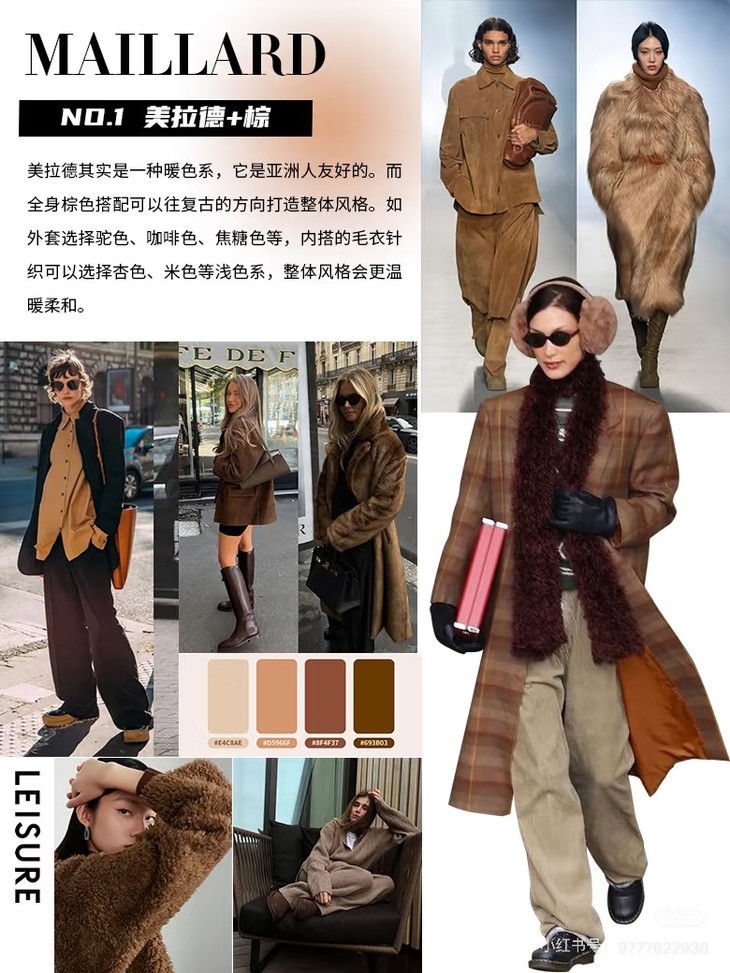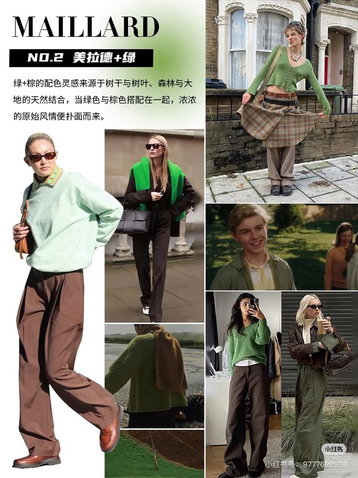 在时尚穿搭中,美拉德风格正是将这些温暖的色彩运用到服饰中,适当加入亮色调,打造一种舒适又高级的秋日氛围。