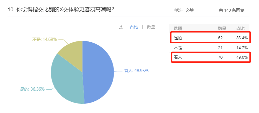根据MBK上面这份调查,近4成人认为,指交比其他X交体验更容易gao潮。
