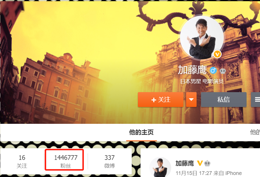 加藤鹰在国内也有众多粉丝,144万男人(可能也有女人)在他微博下盼望可以沾到些许黄金右手的仙气。
