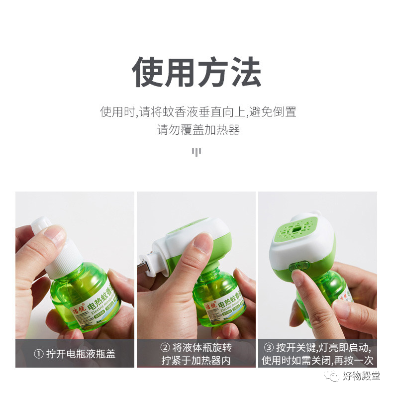 不要倒置使用,虽然咱们的这款电热蚊香液的密封性非常好,但最好还是避免倒置使用。