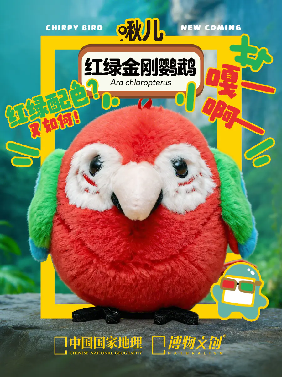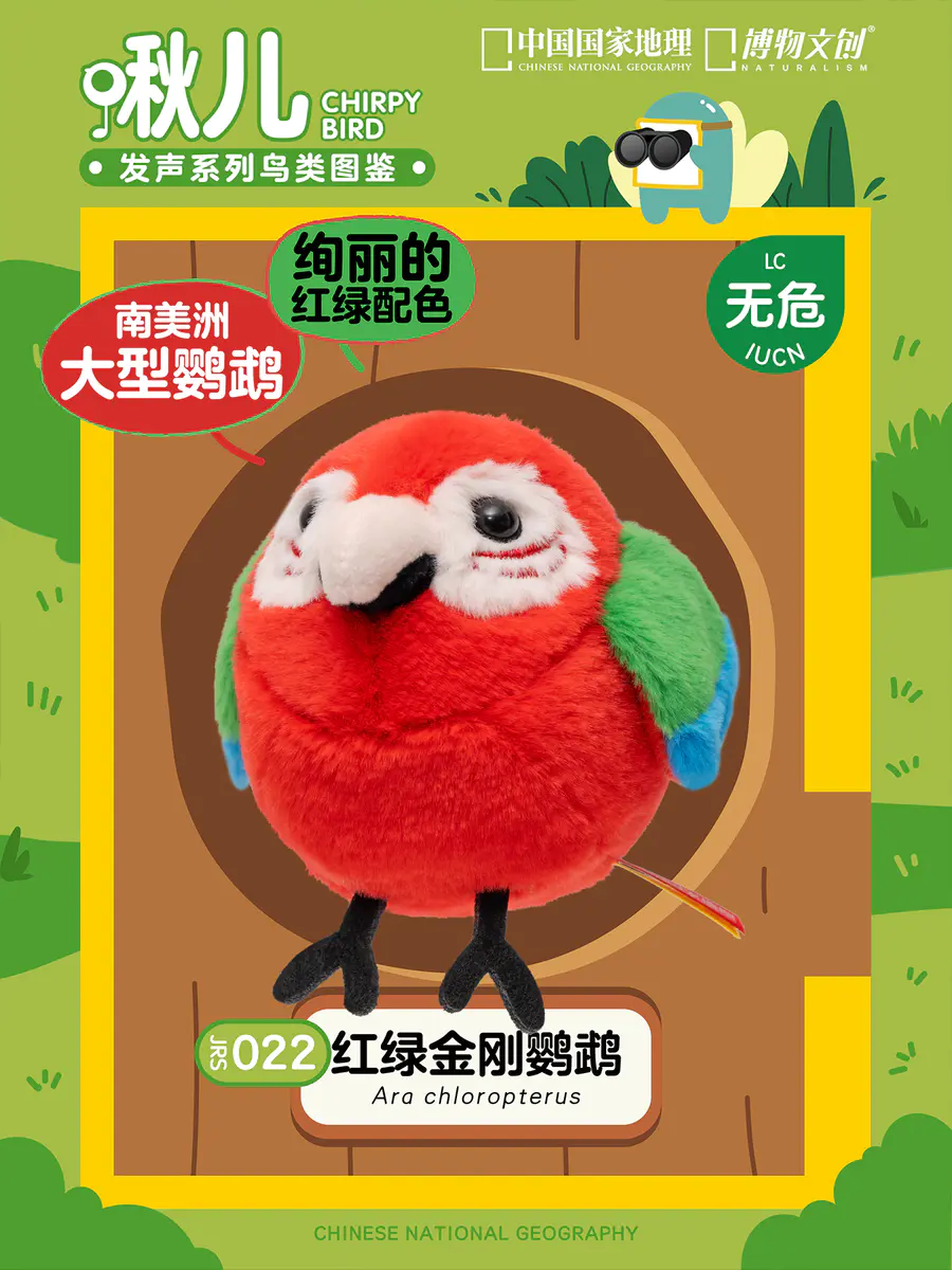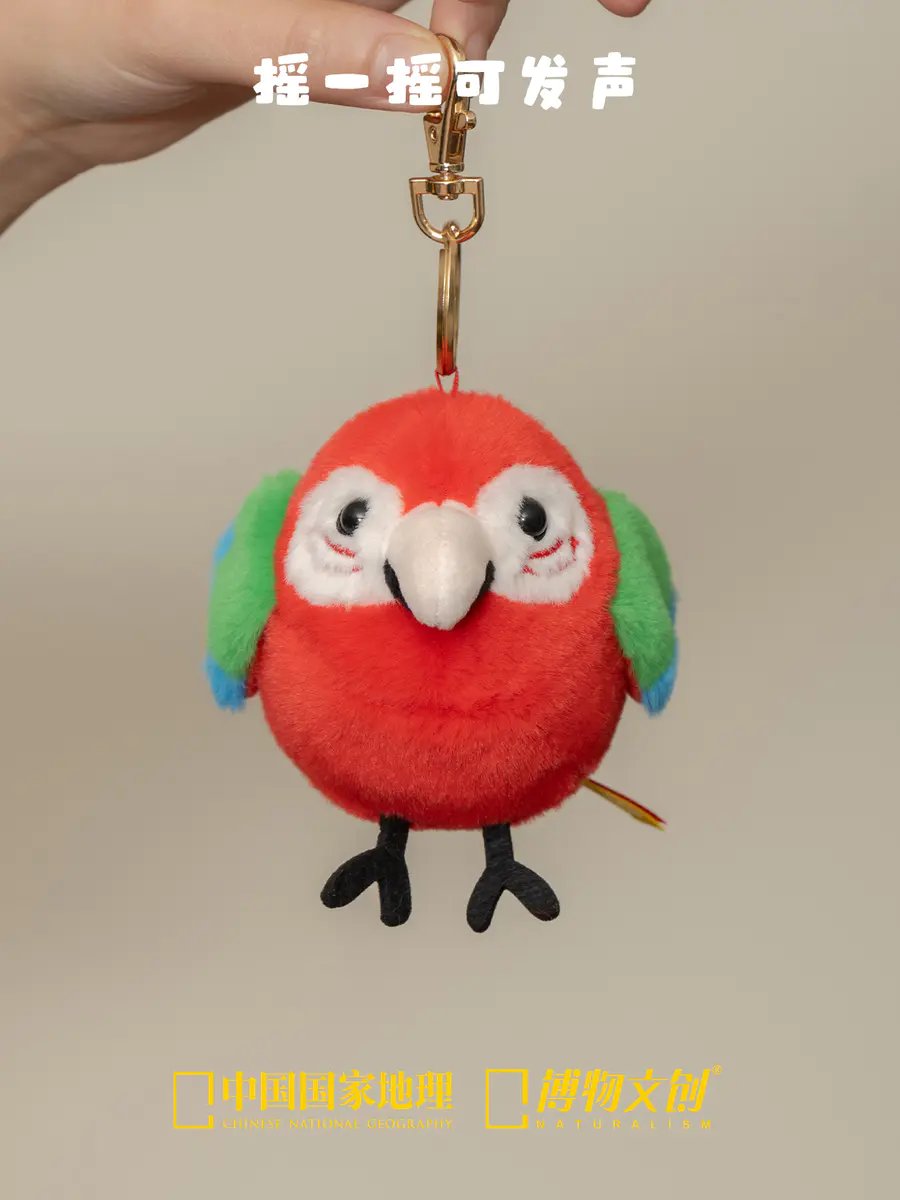 JRS022 红绿金刚鹦鹉,正式加入啾儿系列。啾儿系列不仅可以作为包包挂件,同时自带发声元件(摇一摇可发声,无需充电)。