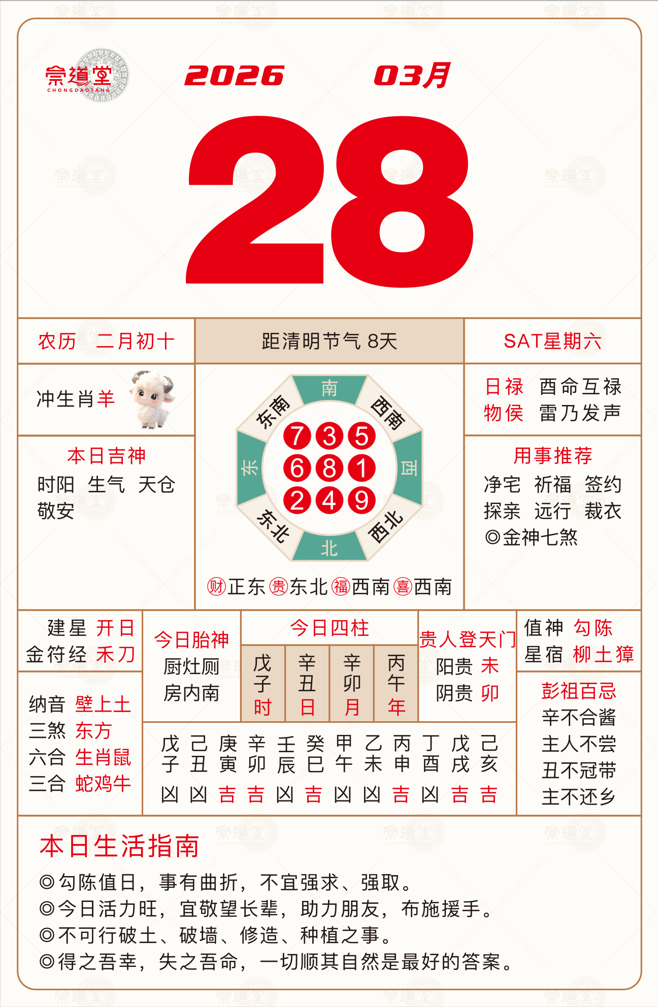 不宜婚丧嫁娶,或进行其它重大事宜