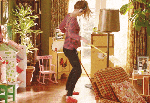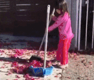 扫把扫动会带来小小的风扬起的阵阵灰尘