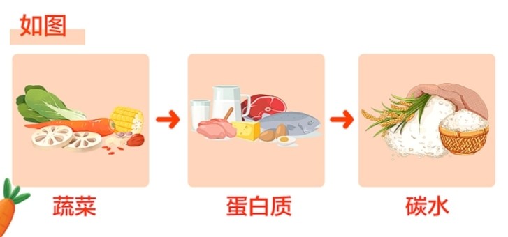 调整饮食顺序:先吃蔬菜,再吃肉蛋,最后吃主食。