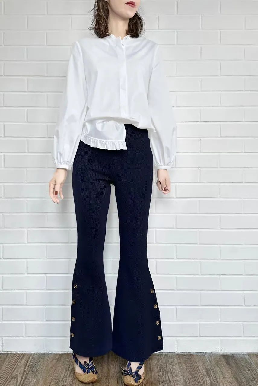 TYNVIE白色纽扣装饰廓形长袖上衣