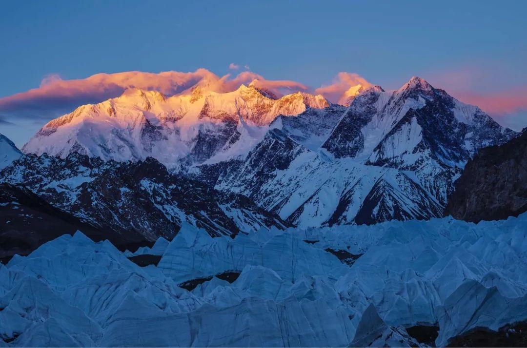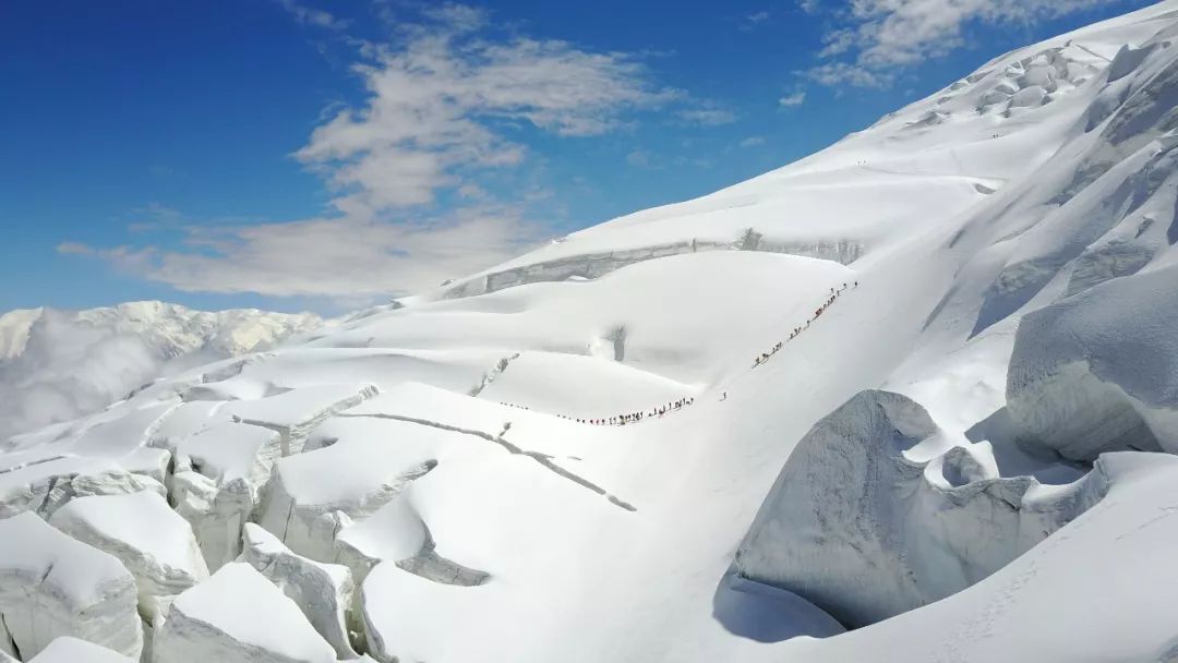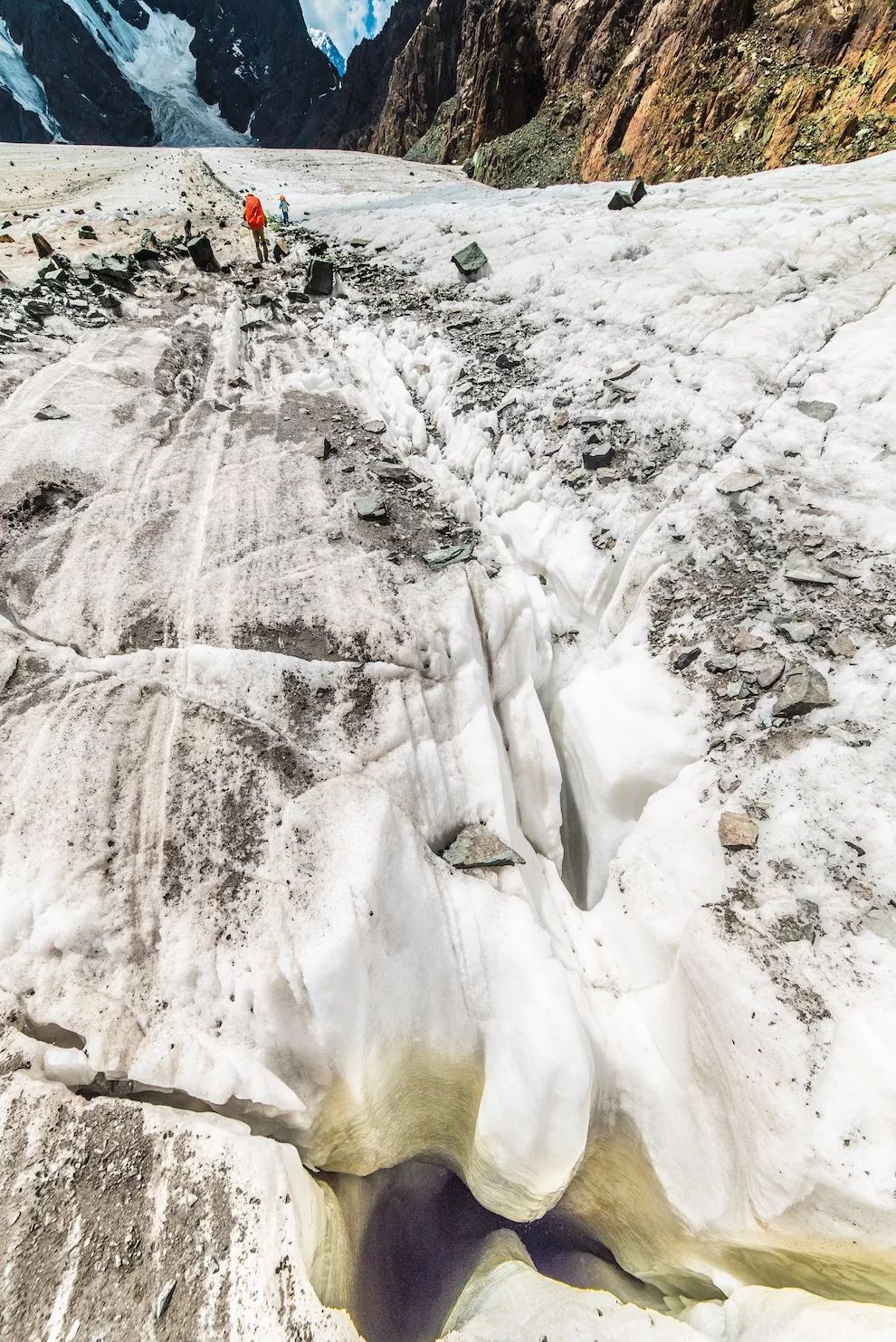 如此高密度的极高山分布,让这里形成了一条沿河谷分列的“冰川走廊”,包括加舒布鲁姆冰川、特拉木坎力冰川、辛集冰川、优斗克冰川,以及中国最大最长的音苏盖提冰川。近身接触如此规模巨大的冰川,难有路线可以企及。