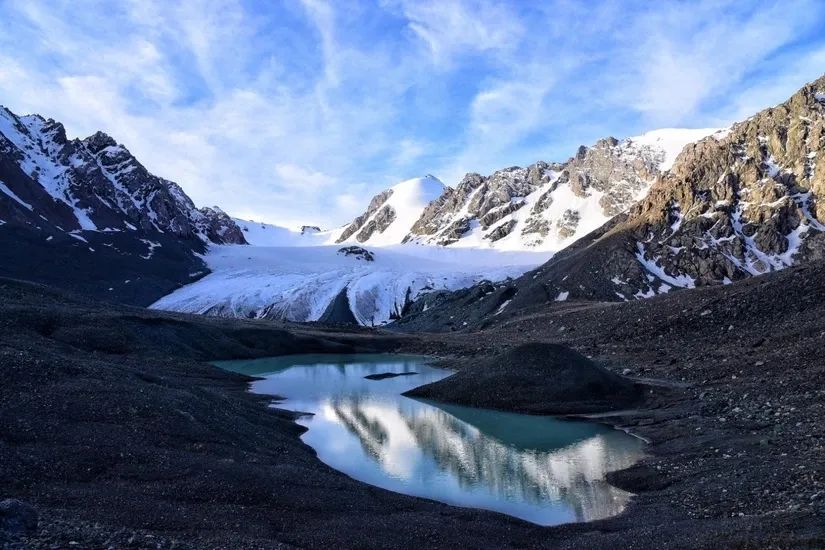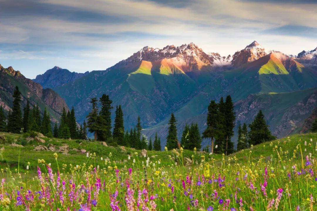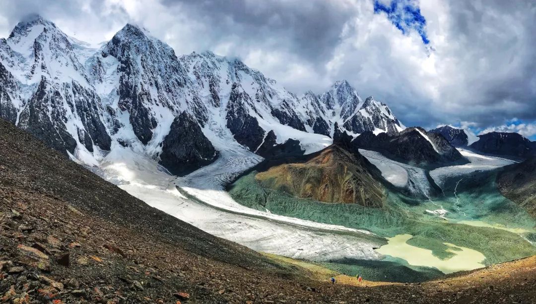 友谊峰是阿尔泰山在新疆境内的最高峰,海拔4374米,雪线以下便是葱茏绿树,西南坡分布着中国海拔最低的山谷冰川。