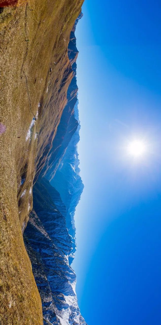 大片旷原尽头,得不到水分滋养的高山赤裸无蔽,褐色的基调之上是耀眼的白,带着从大地垛起来蛮荒气息。