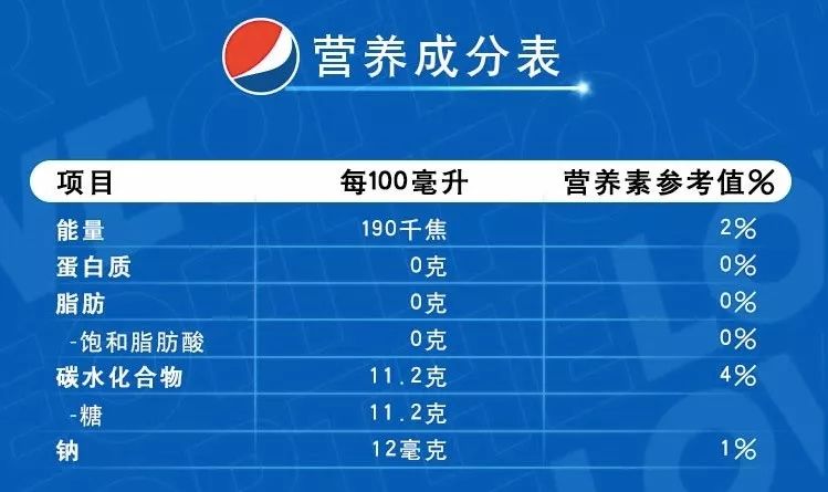 百事可乐的营养成分表,注意购买时不要买到无糖型可乐