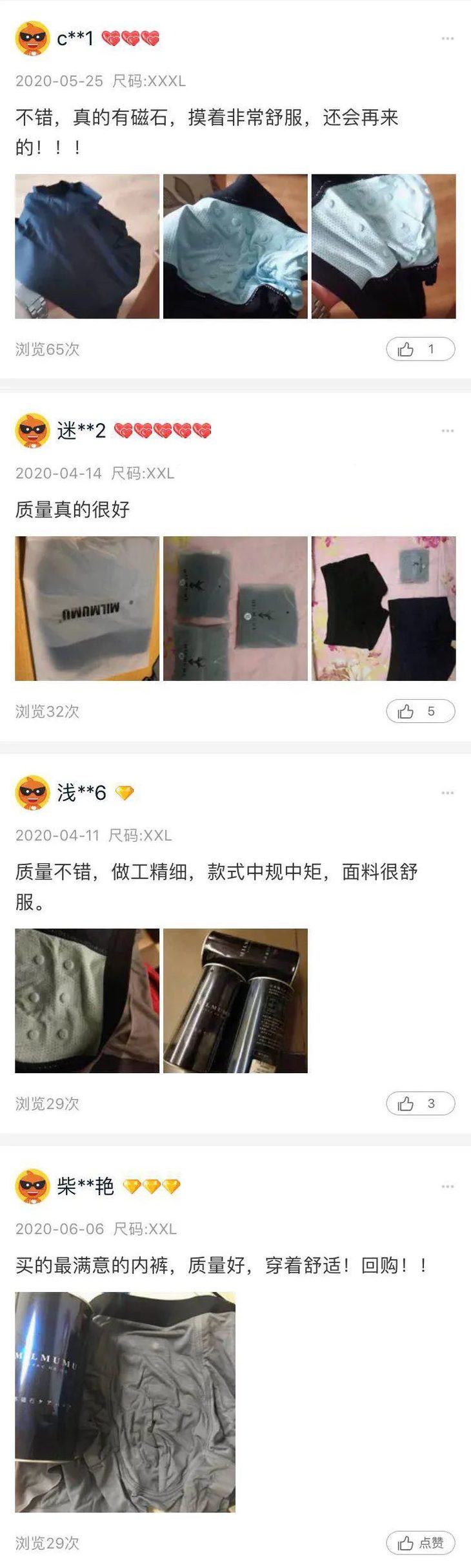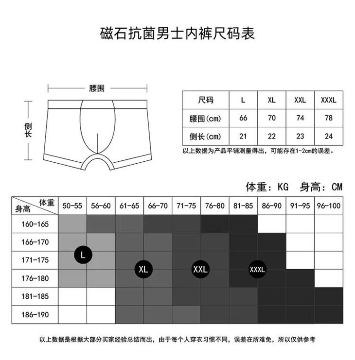 支持专柜验货MILMUMU 内裤有多款颜色 无论是外穿,搭配短裤、牛仔裤 还是做内搭,搭配衬衫 简直是你四季的百搭衣物 穿的得体又舒适 还不怕水不怕污渍 共有L、XL、XXL、XXXL四个尺码, 再贴心的附上尺码图, 就算是送人不知道对方该穿多大, 对照尺码图就可以轻松确定