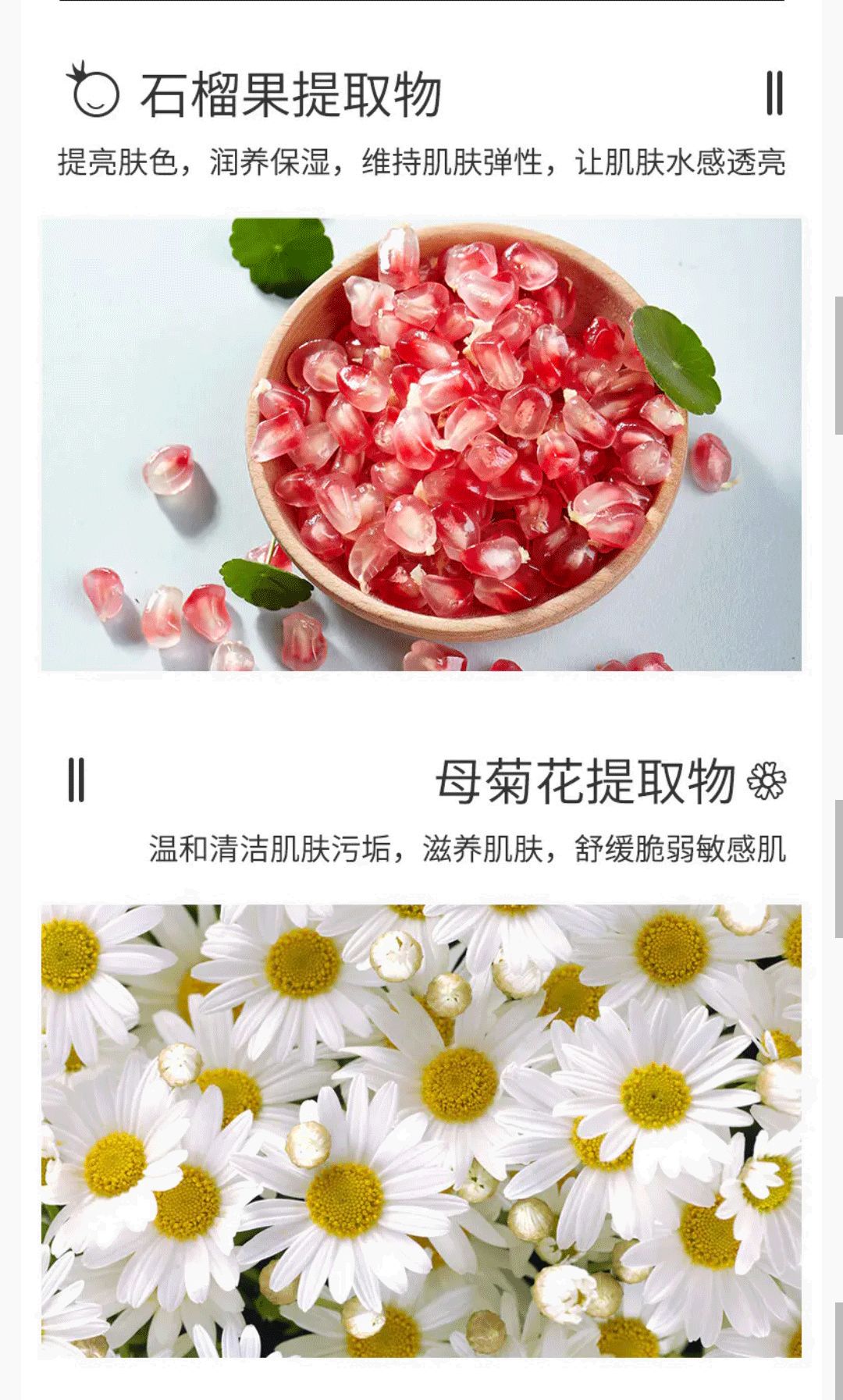 特别添加石榴果提取物、母菊花提取物