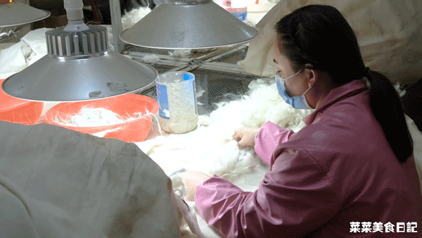 分选好的羊绒,还要再经过3道工序,挑拣杂质、杂色,清洗,荧光检测。