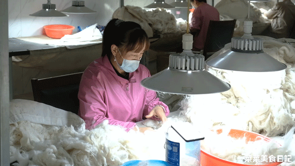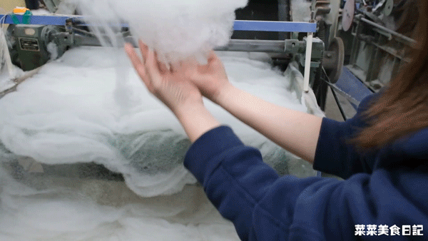 而后,再经过机器分梳,直到把不符合标准的粗纤维完全去掉后,才能进行送去纺纱!