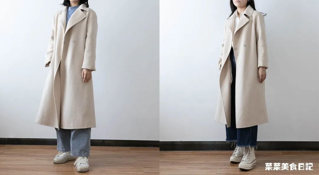 经过整烫后,我们收到的羊毛大衣就非常平整挺括,光是挂在那里,就已经自带高级感!