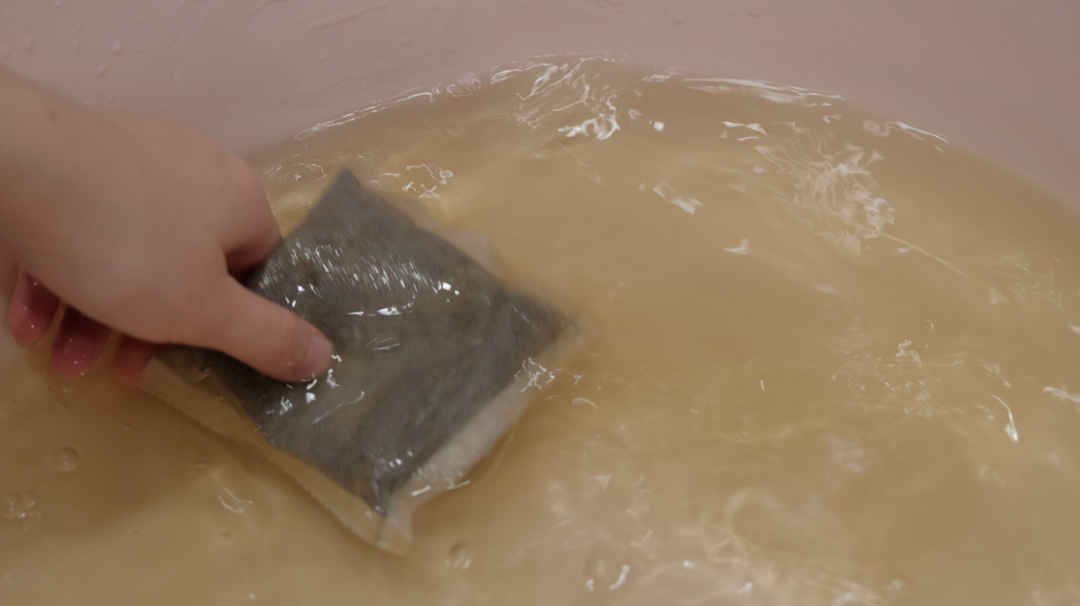 将泡脚包先在温水中揉、搓,汤水会逐渐变浓,之后再加热水,泡脚时也可以踩踩。
