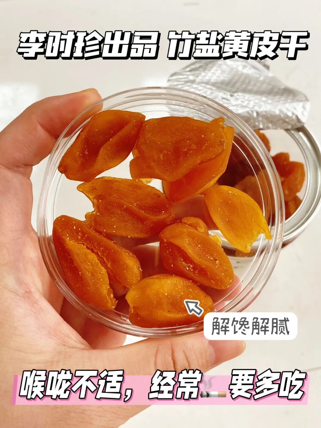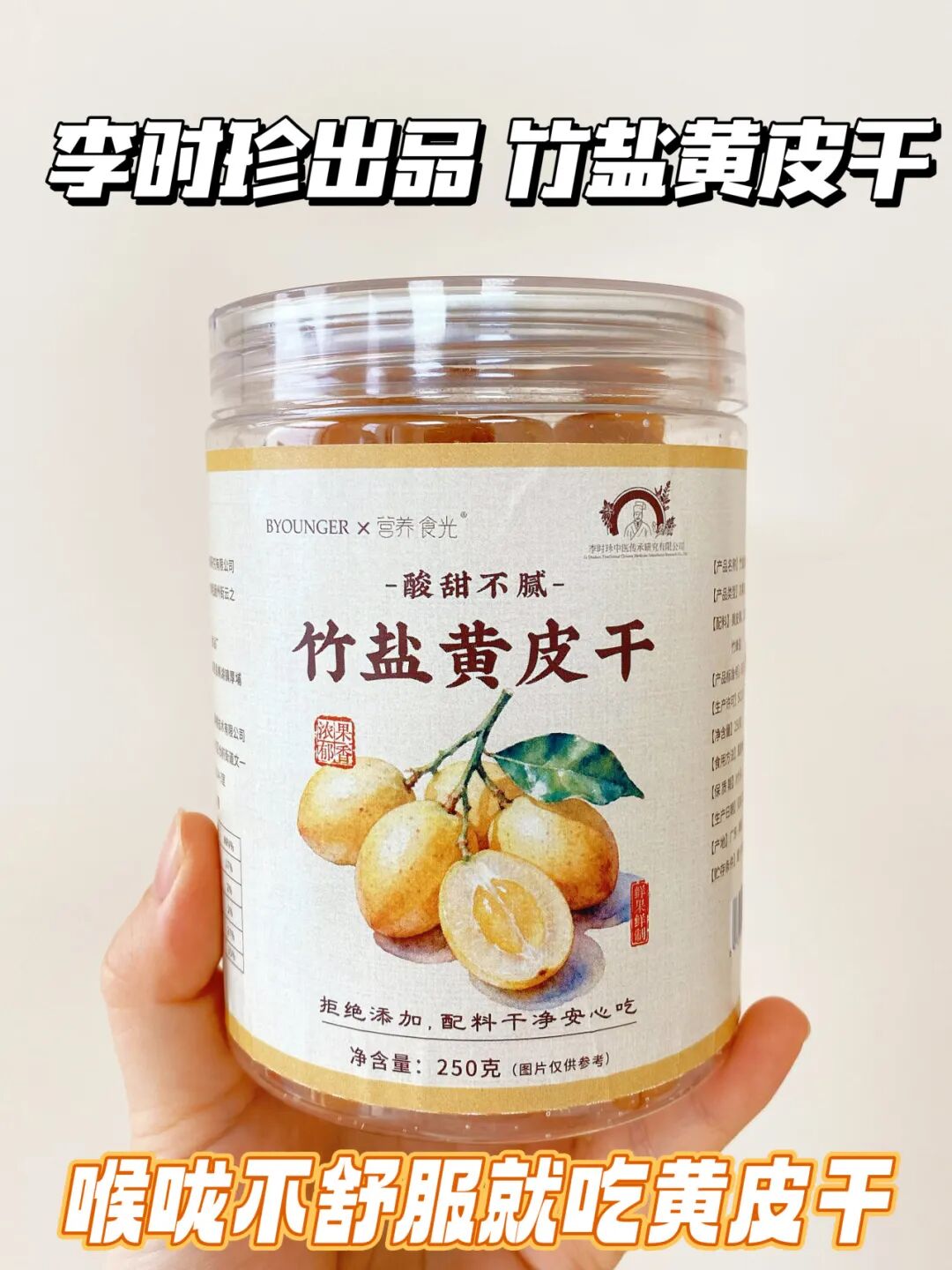 日常总吃重口、容易喉咙干痒的家人,一定要备几罐李时珍出品的竹盐黄皮干,喉咙不舒服时含一片,饭后来几颗解腻,感觉爽到飞起。