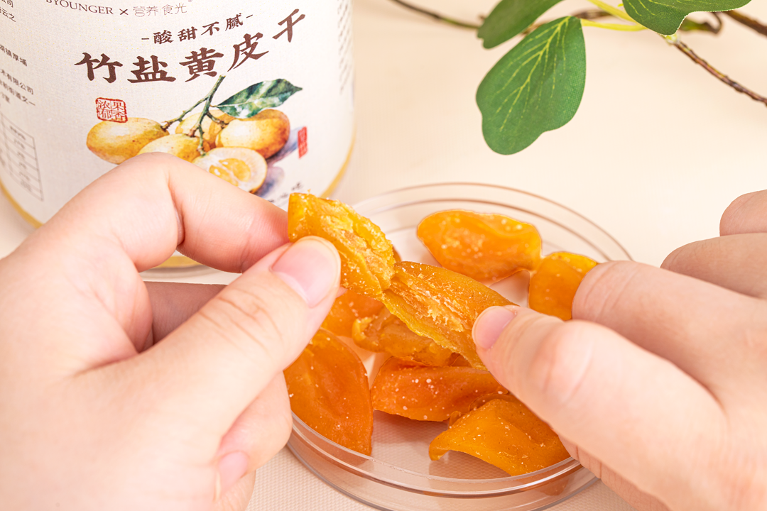 它结合《本草纲目》经典经历了36次工艺调整才制作出这款口感巨好吃的竹盐黄皮干!