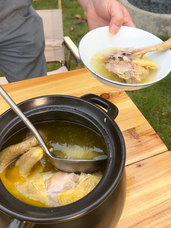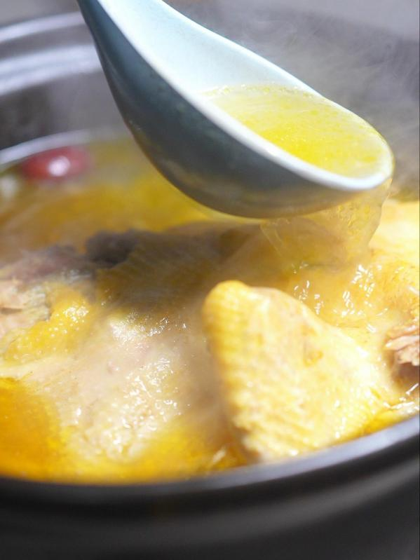 土鸡炖的汤金黄油润,真的鲜而不腻,
