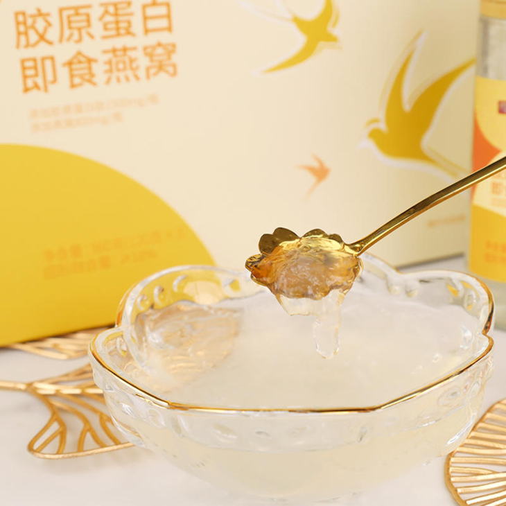 即食燕窝×胶原蛋白肽,双重营养,加倍享受!每瓶添加可溯源的印尼进口燕窝,固形物含量≥18%;每瓶含有胶原蛋白肽1500mg,分子量小于1000道尔顿,人体易吸收。低卡0脂,进补无负担;严苛标准,多重权威检测,品质有保证!