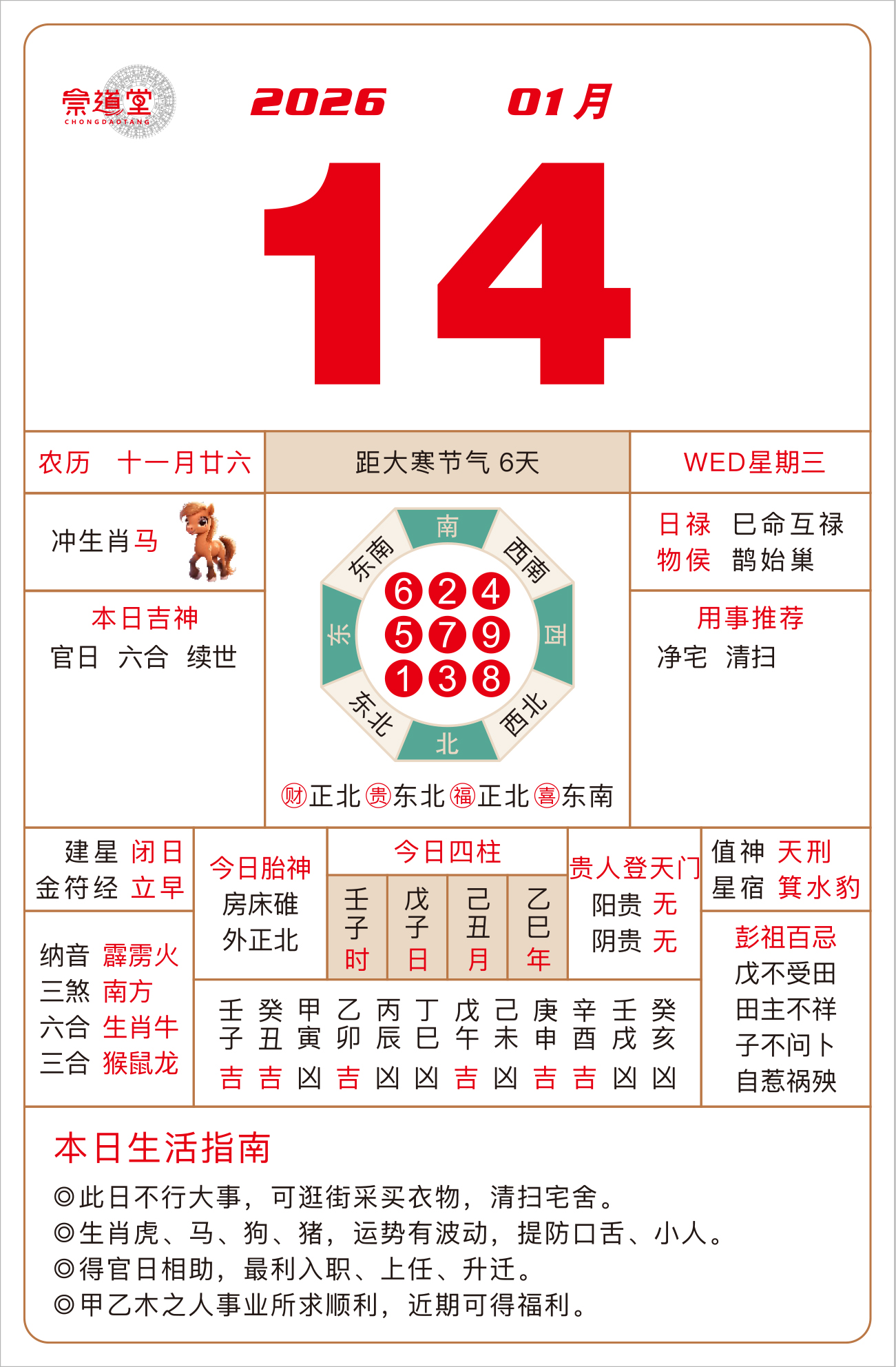 2026年1月20日 农历十二月初二 甲午日 冲鼠