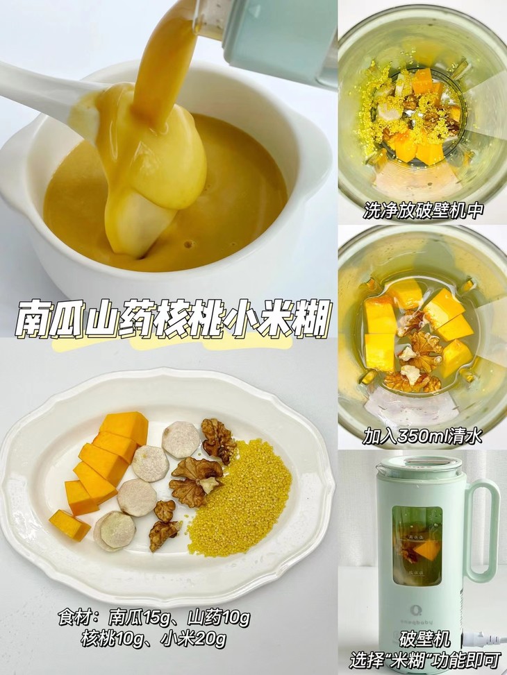 🥣食材:南瓜15g、山药10g、核桃10g、小米20g