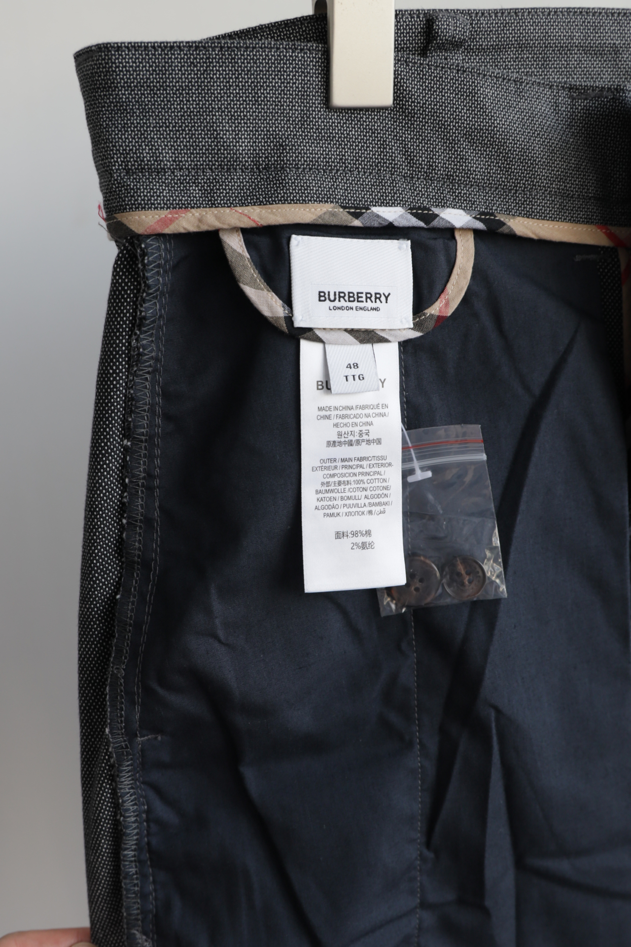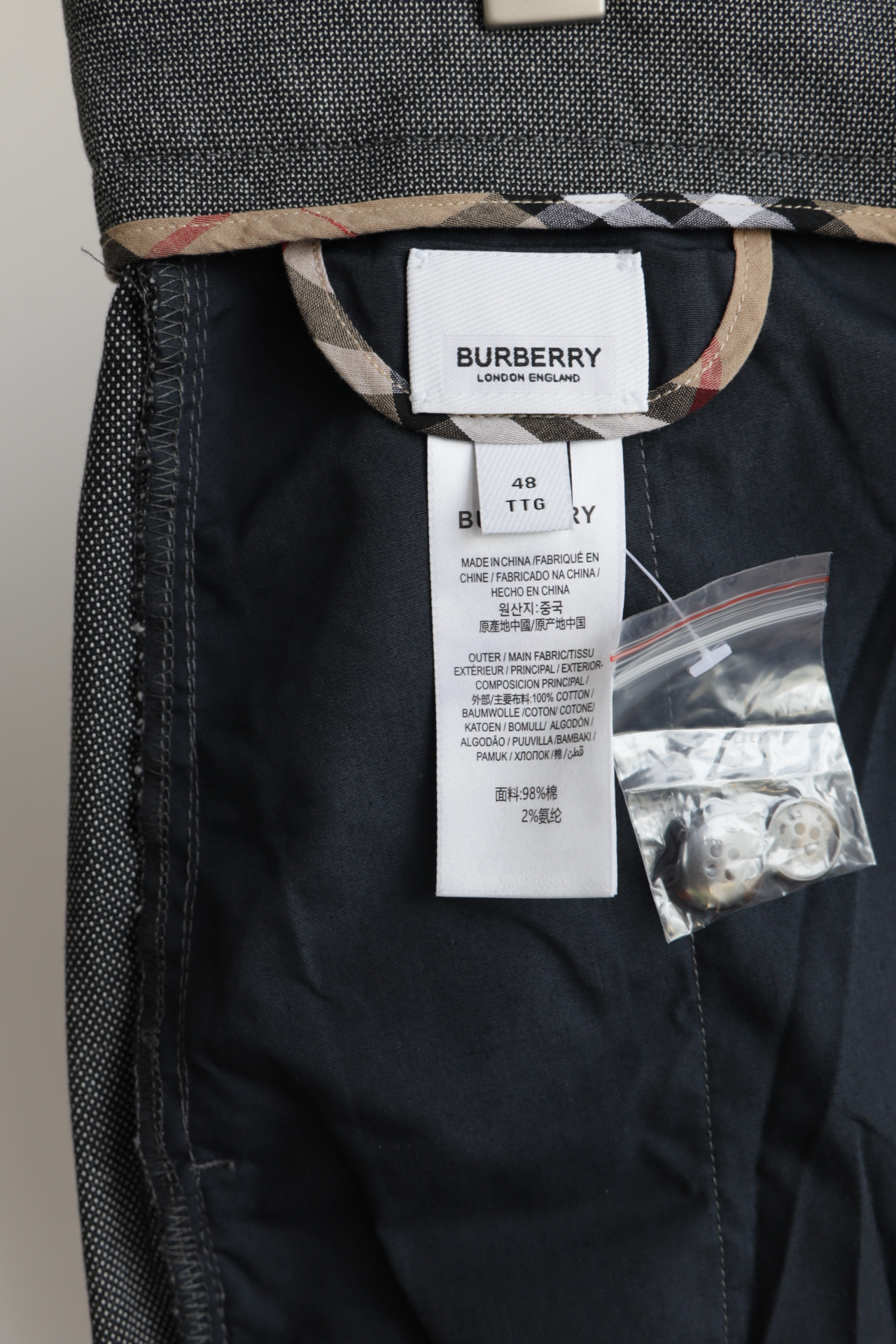 全部对格子剪裁,口袋也是对格子
