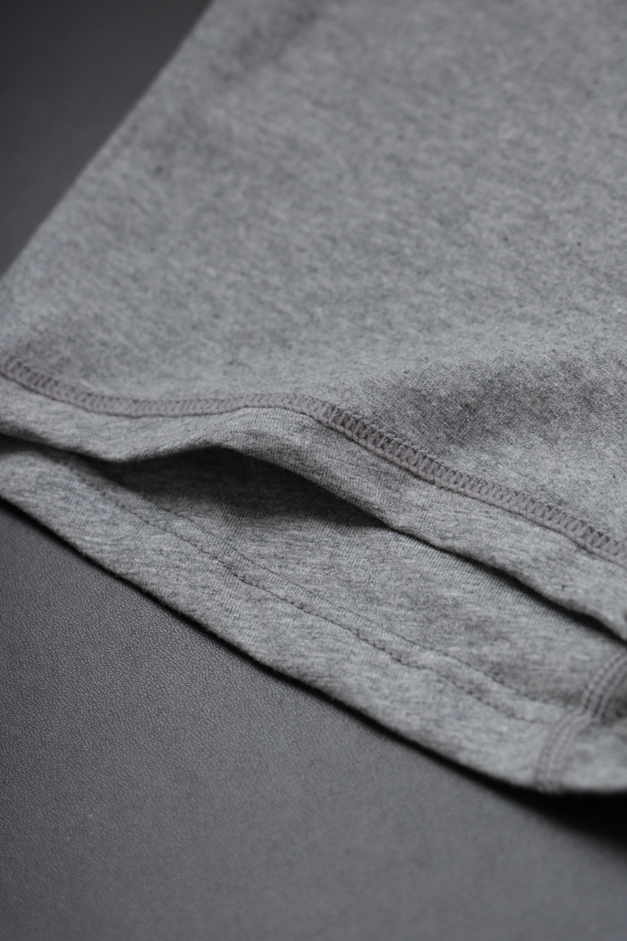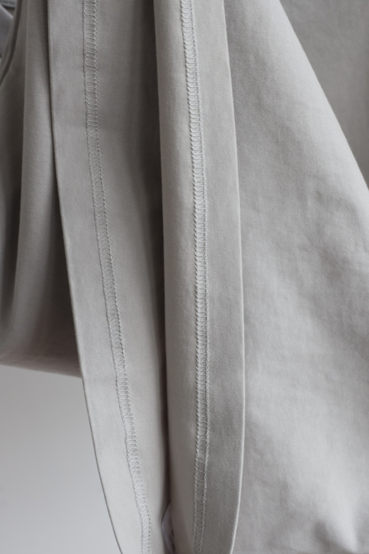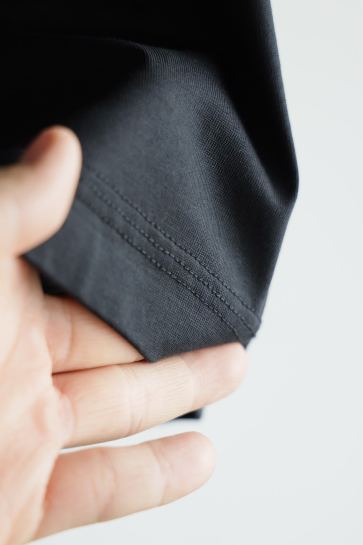 自带垂感的丝光平纹,三道车线锁边,胸口立体植绒字母印花