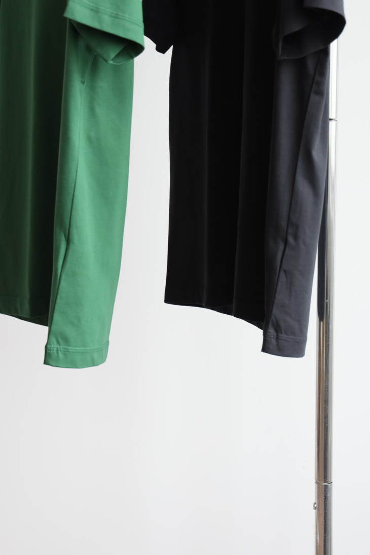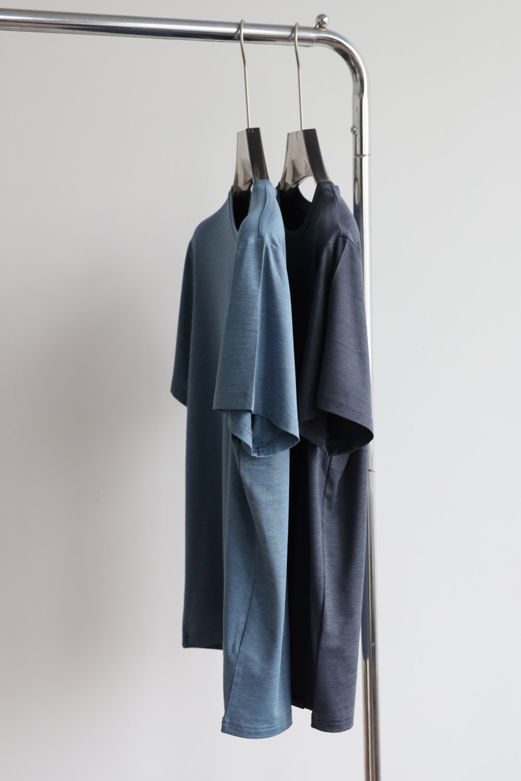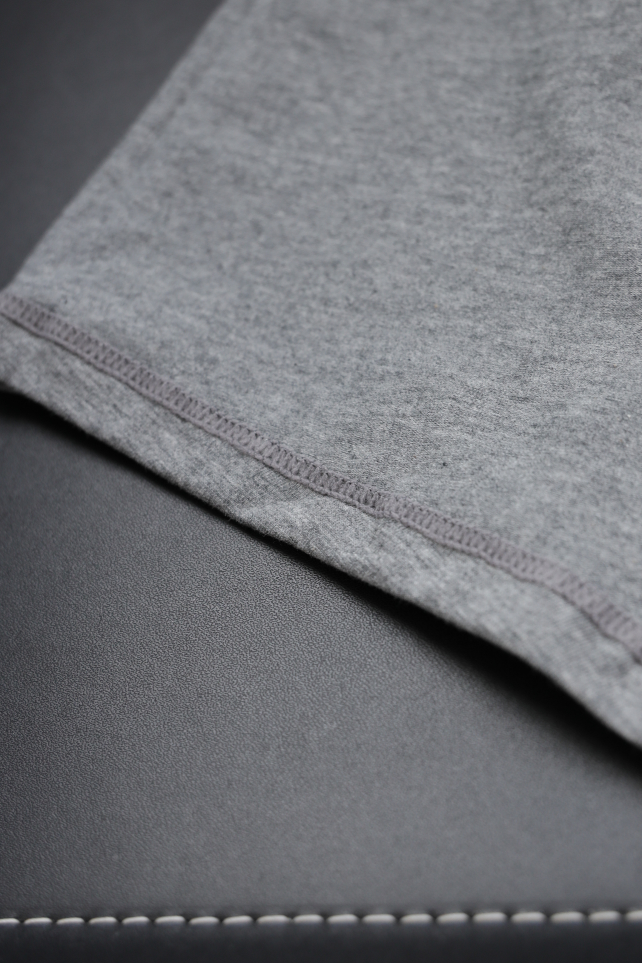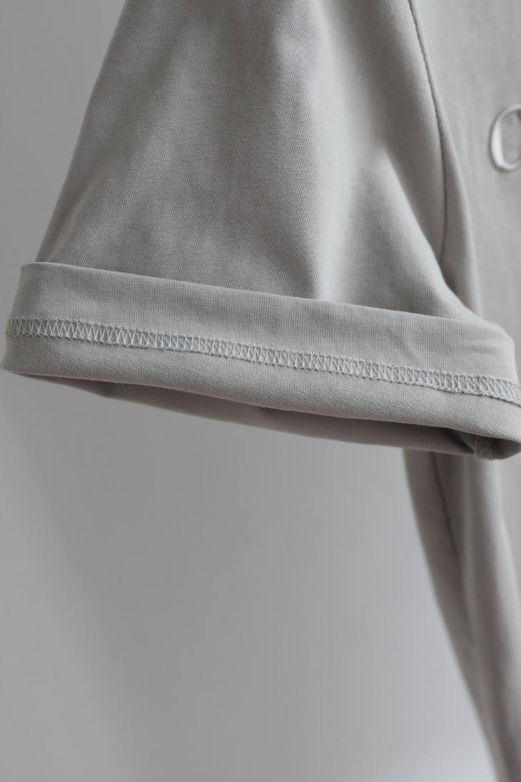 自带垂感的丝光平纹,三道车线锁边,胸口立体植绒字母印花