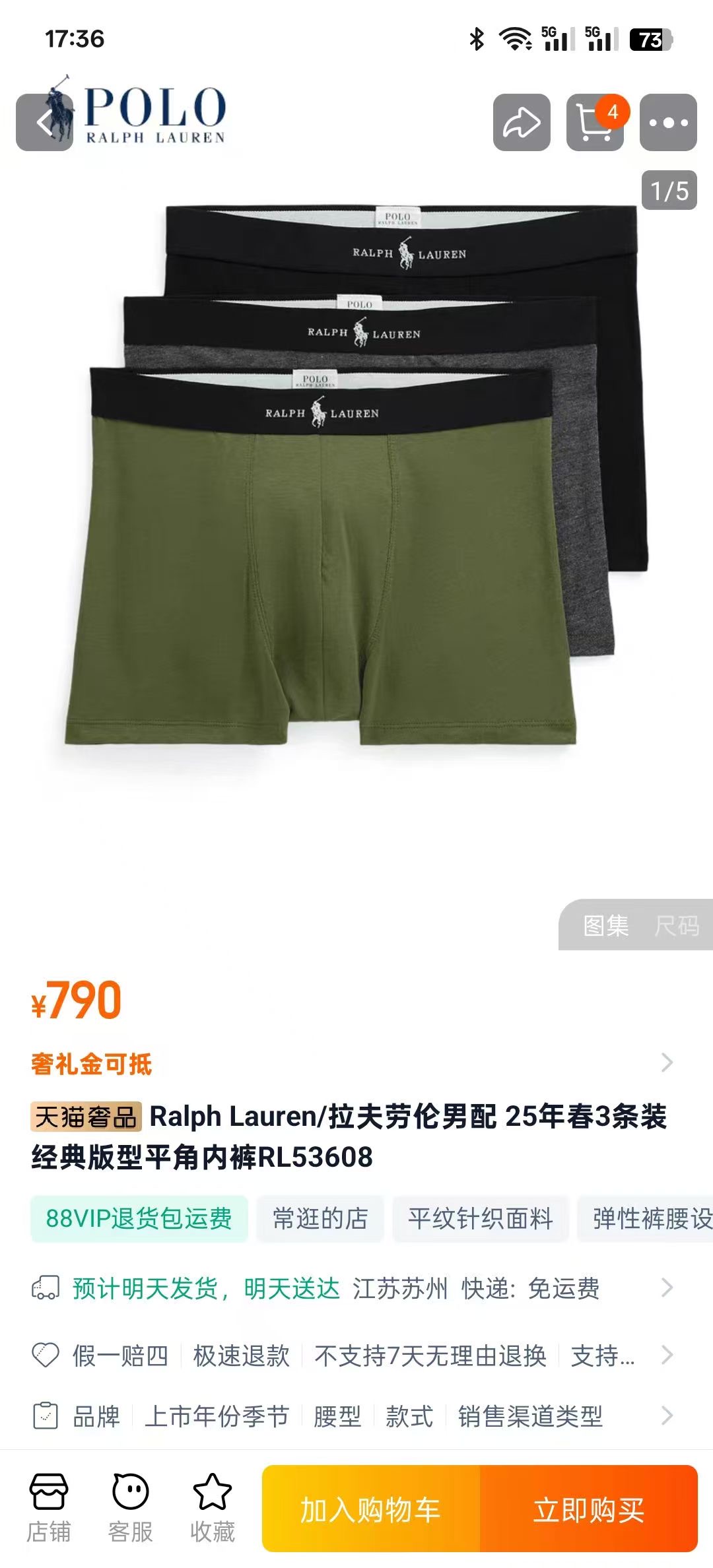 R.L 三条一盒 棉弹混纺 四角裤平角裤