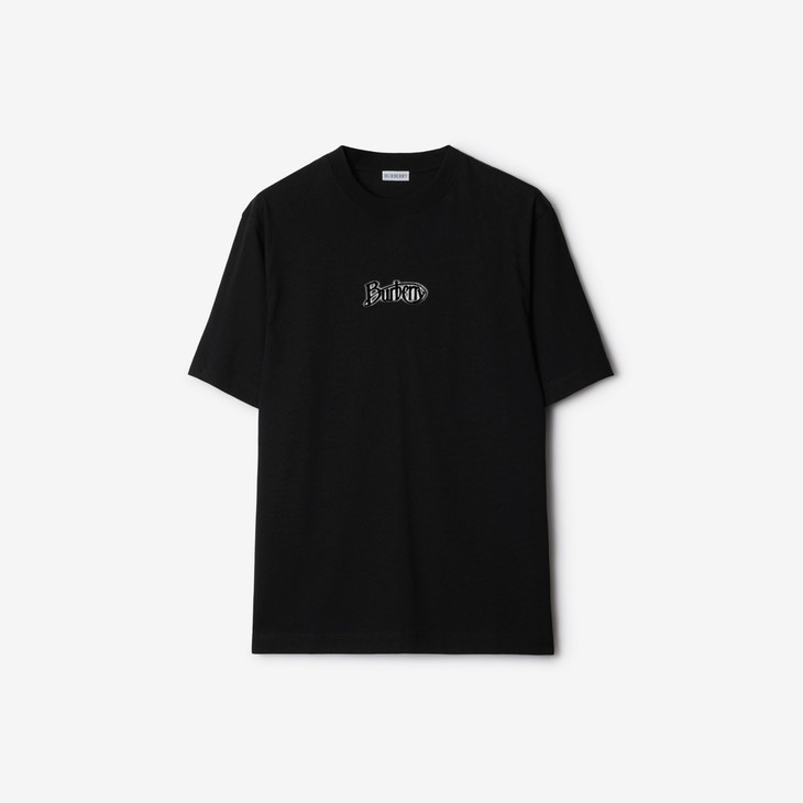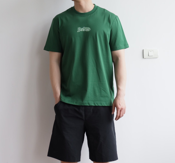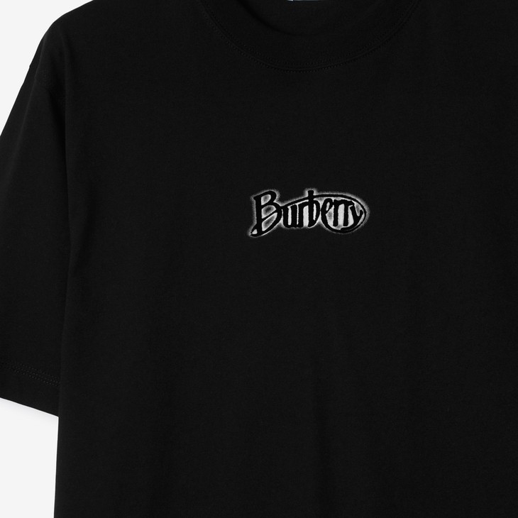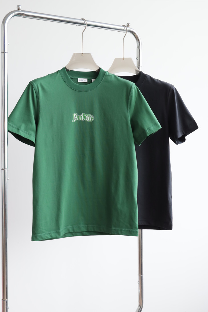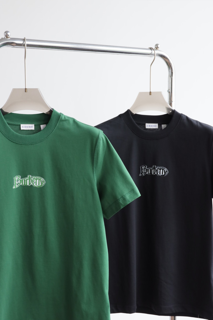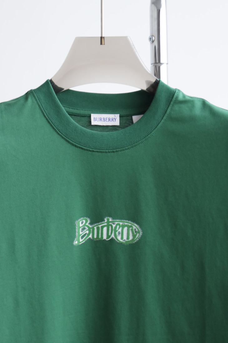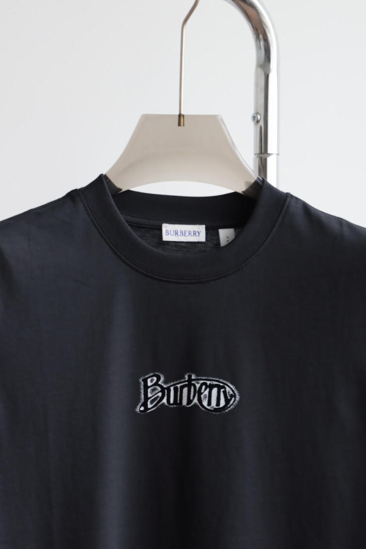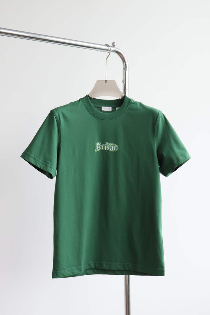 B.B. 丝光平纹 植绒字母印花 圆领短袖T恤