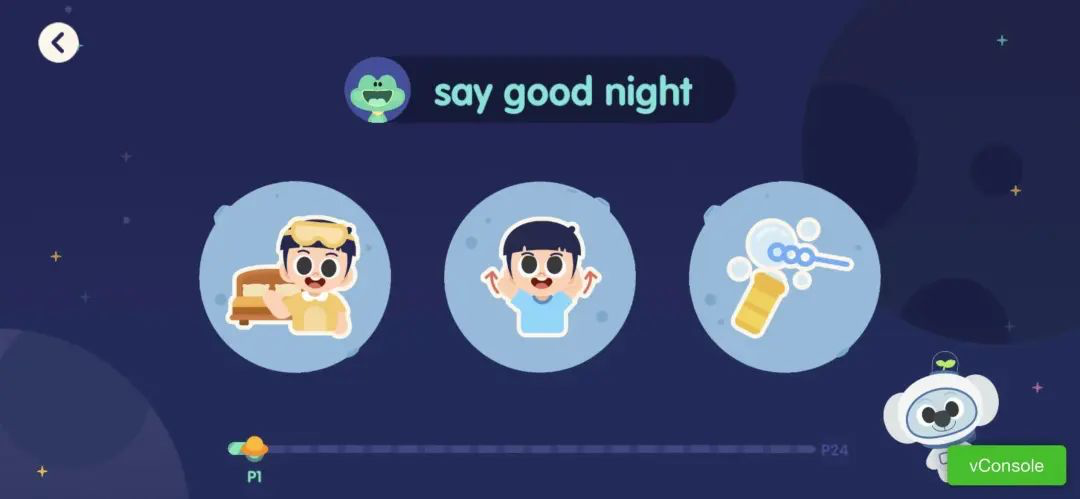 (小朋友听到 say good night,3选1)