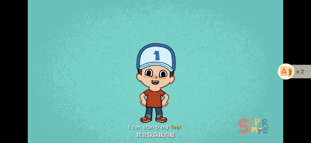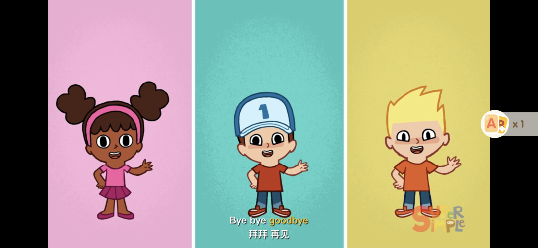 以Bye Bye Goodbye这集SSS儿歌为例,看动画的过程中,重点要掌握的3个词汇:hands、goodbye和feet在动画中会高亮显示。