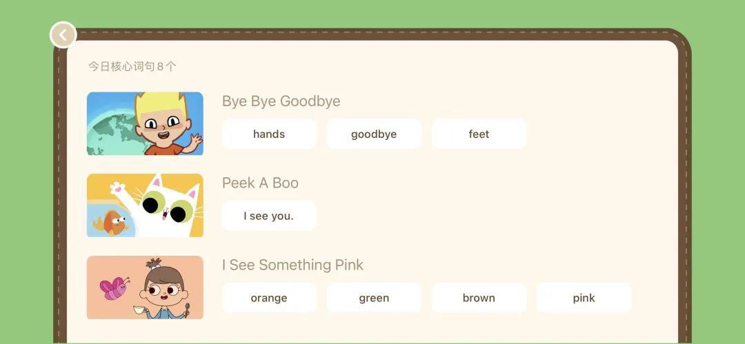 这些动画里听到的关键词句,后面的环节还会不断帮孩子巩固。
