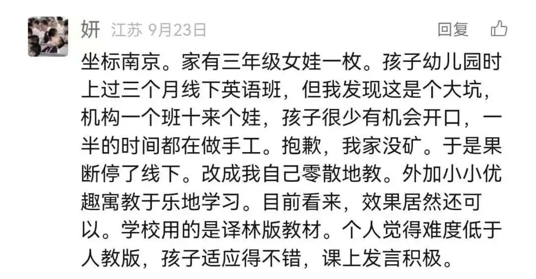 来看看这些已经按原版路线走,已经用上小小优趣的家长们面对新教材是怎么说的: