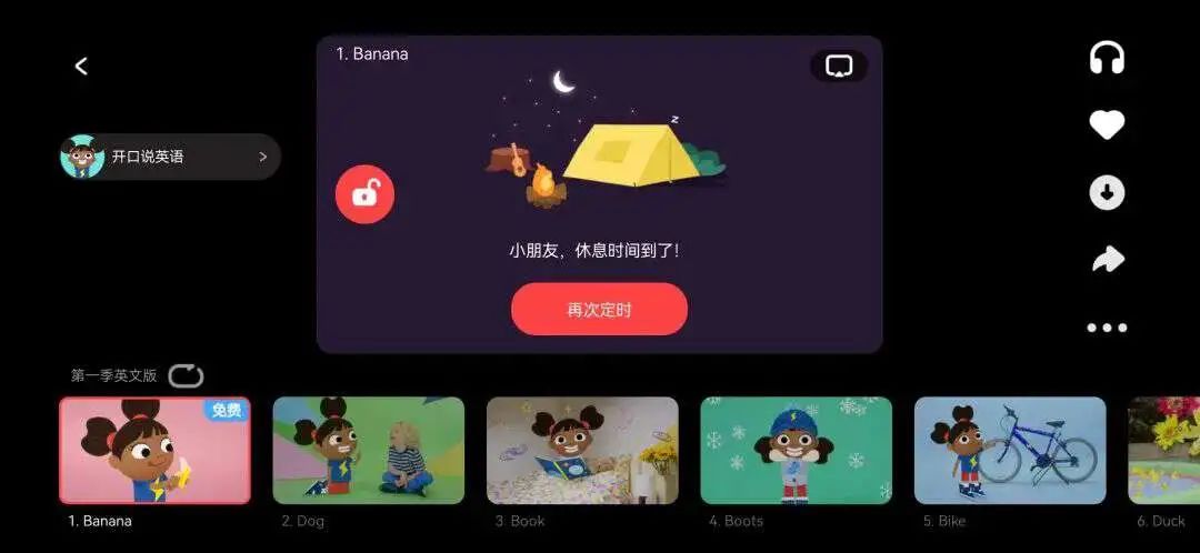 很多家长都担心孩子看屏幕时间太长伤眼睛,或者有一些场合不适合看屏幕,但是孩子非要看(比如坐车的时候,很颠簸),也可以在动画播放页面,点右上角的耳机图标进入只听模式,给孩子播放动画原声进行熏听。