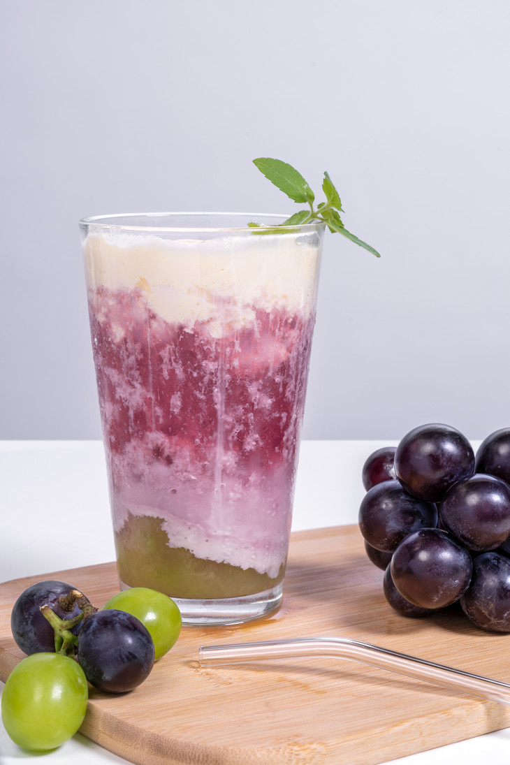 底部是酸酸甜甜的大颗粒葡萄果肉,中间是冰爽清凉的冰沙,最上面的芝士奶盖简直是点睛之笔!做法也超级简单,用破壁机就可以搞掂,一起来动手试试吧!