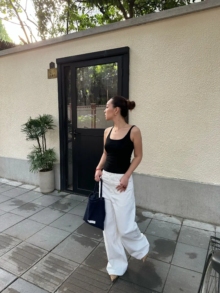 新品上身|视错觉吊带 + 白裤子的极简观感🤍