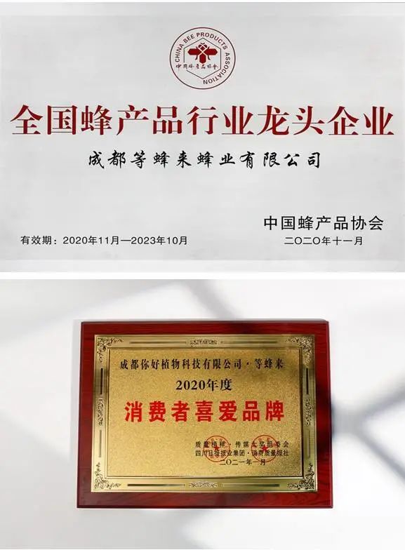这么多媒体认可的品牌,完全可以安心食用了, 等蜂来荣获“消费喜爱品牌”和“全国蜂产品行业龙头企业称号”。