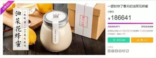 等蜂来四川白蜜就登录过京东众筹,1一个月,共有2542人支持,回购率高达99%。