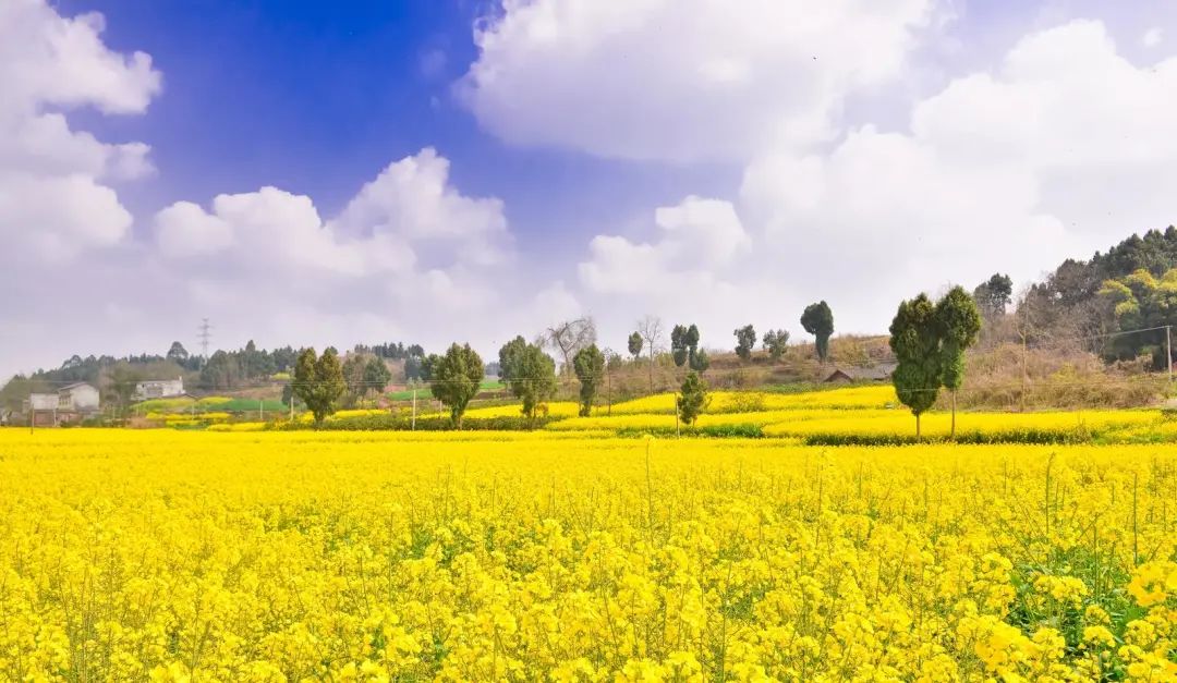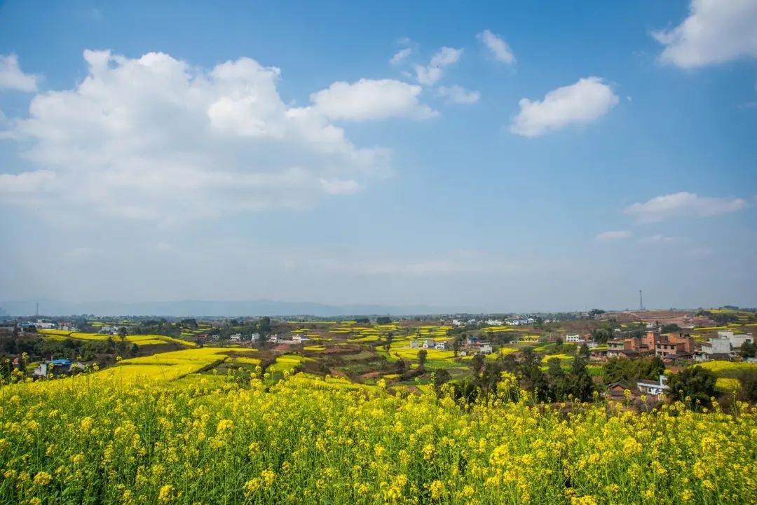 三月,春拂大地,金堂沉浸于金色花海中,历届“国际油菜花节”曾在这里举行。