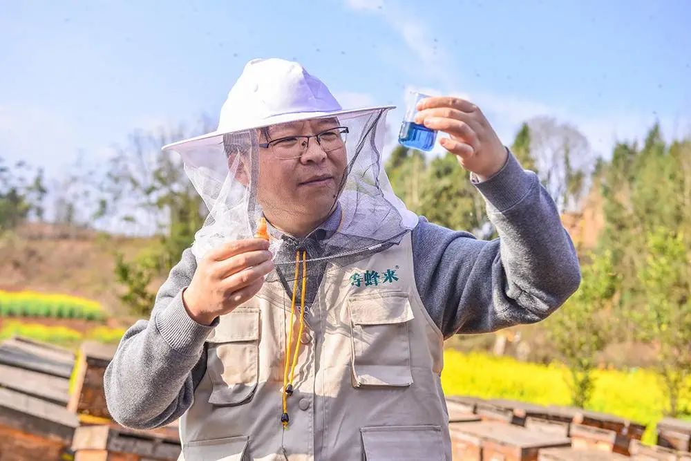 在金黄的油菜花海中,蜜蜂往返于蜂箱与花蕊之间,而同样繁忙的,还有辛勤的养蜂人和等蜂来的品质检测官。