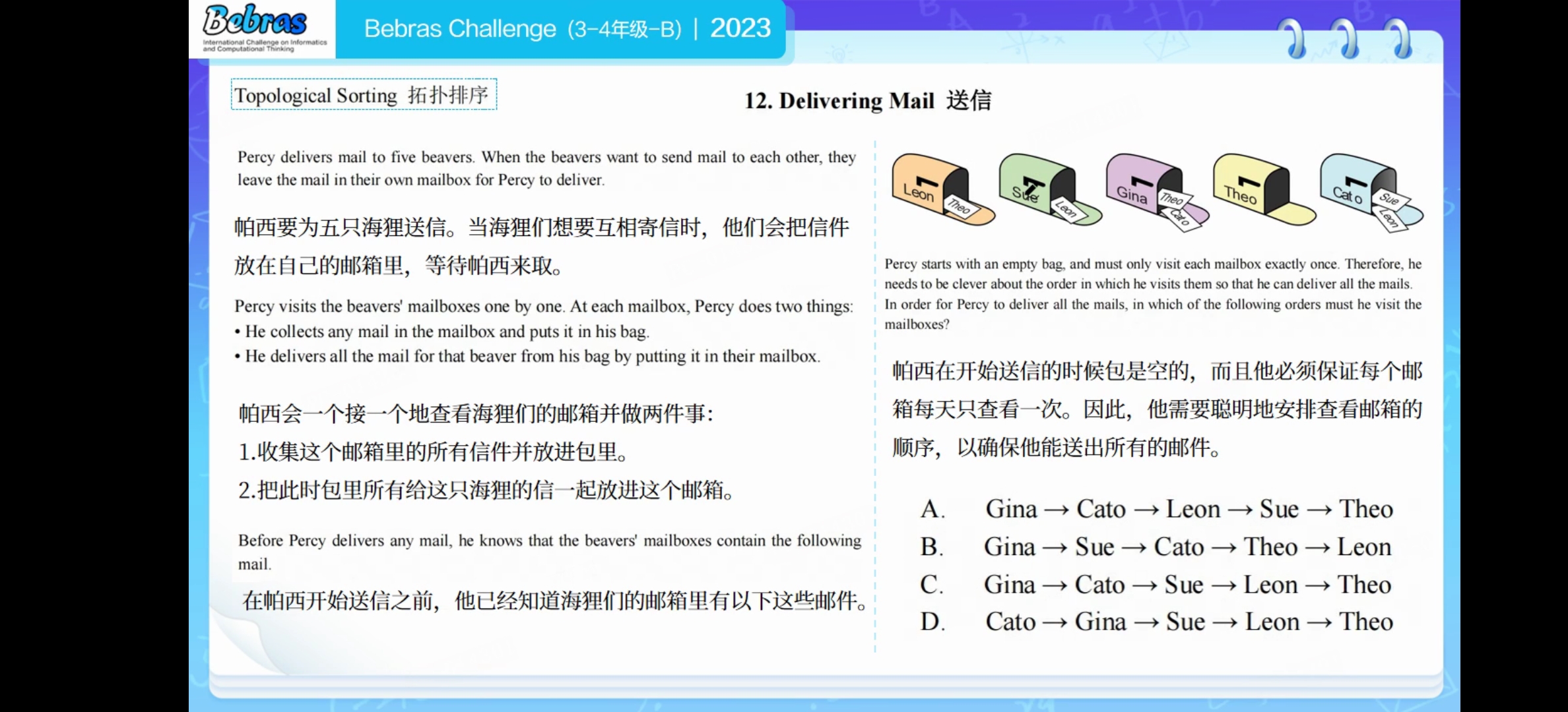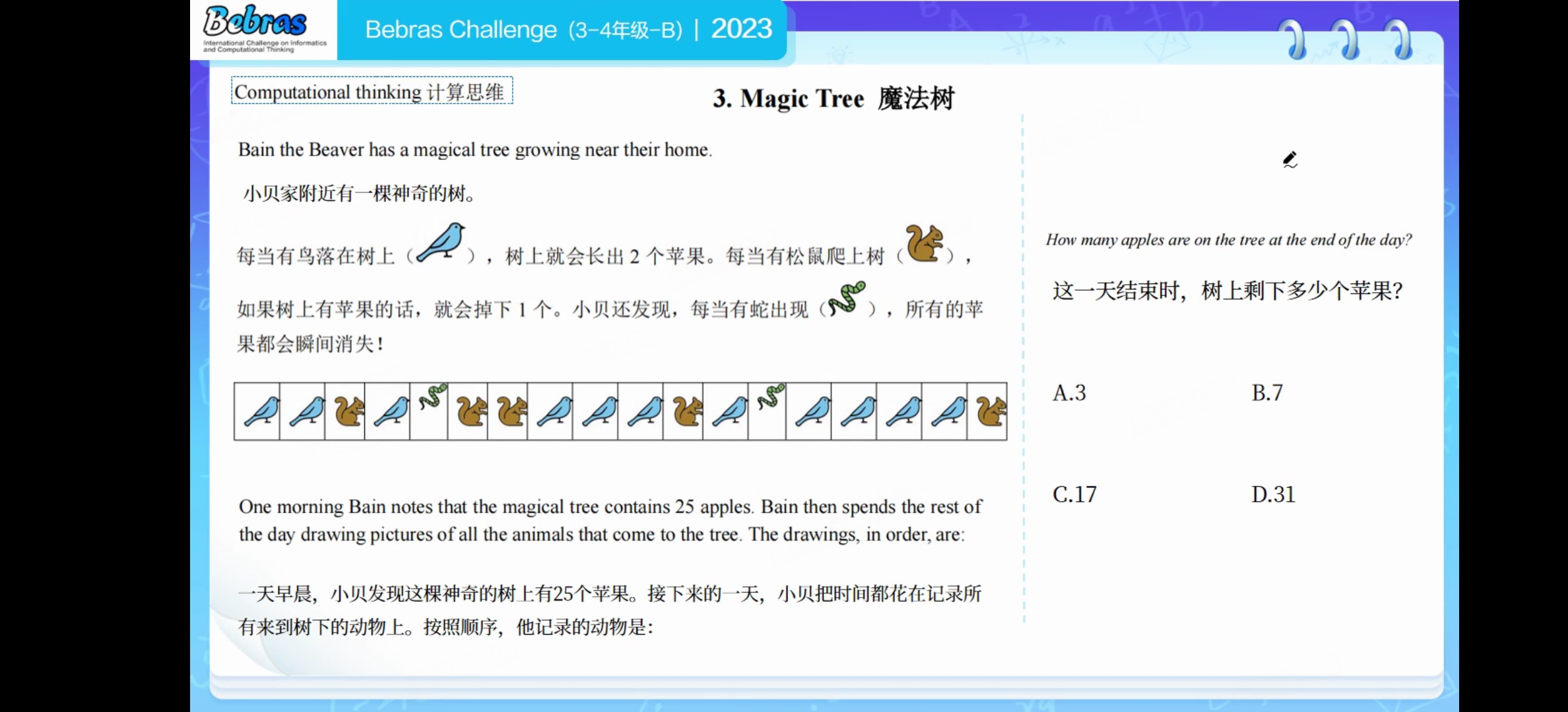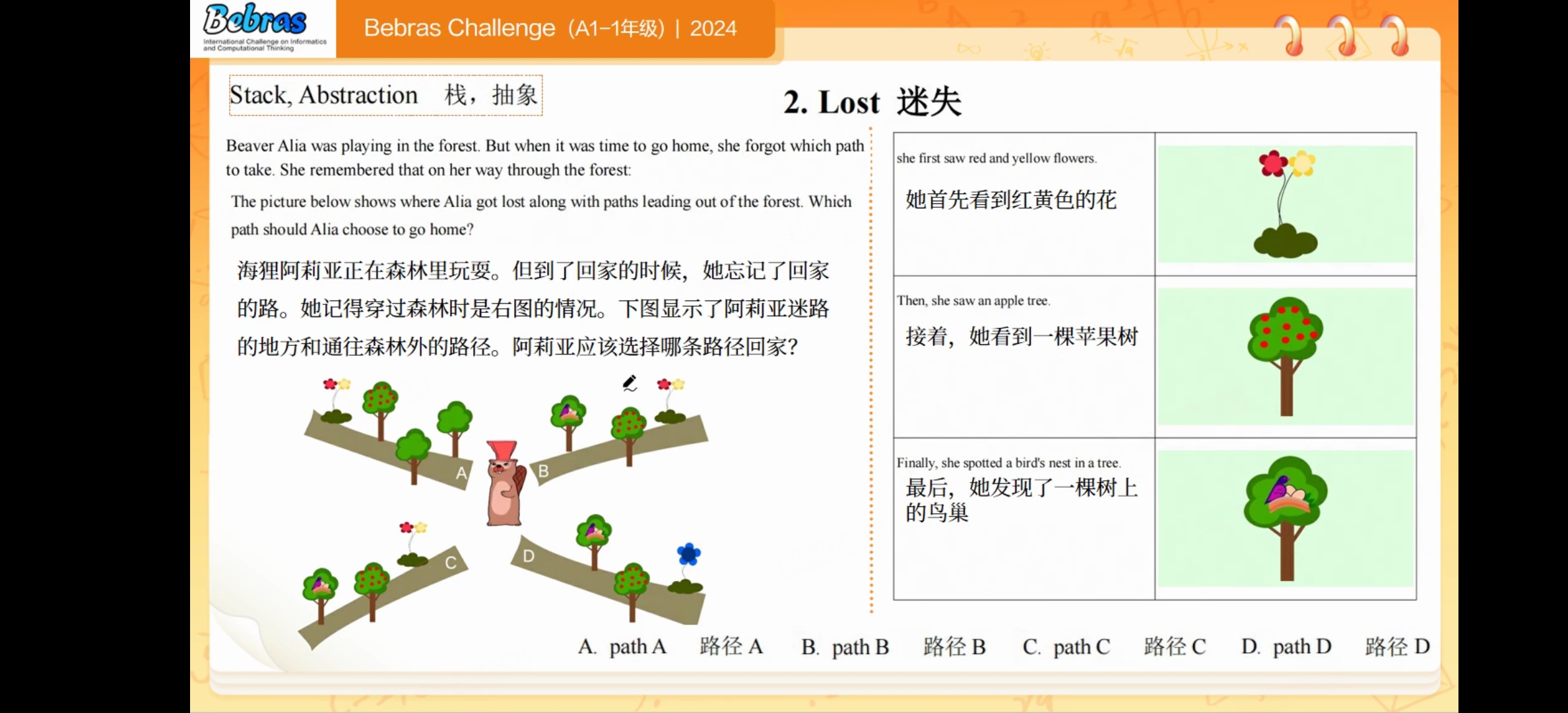 海狸题目新颖、趣味性强、场景丰富,鼓励并培养孩子使用计算思维和逻辑推理去解决实际问题,被誉为AI时代的数学思维训练。