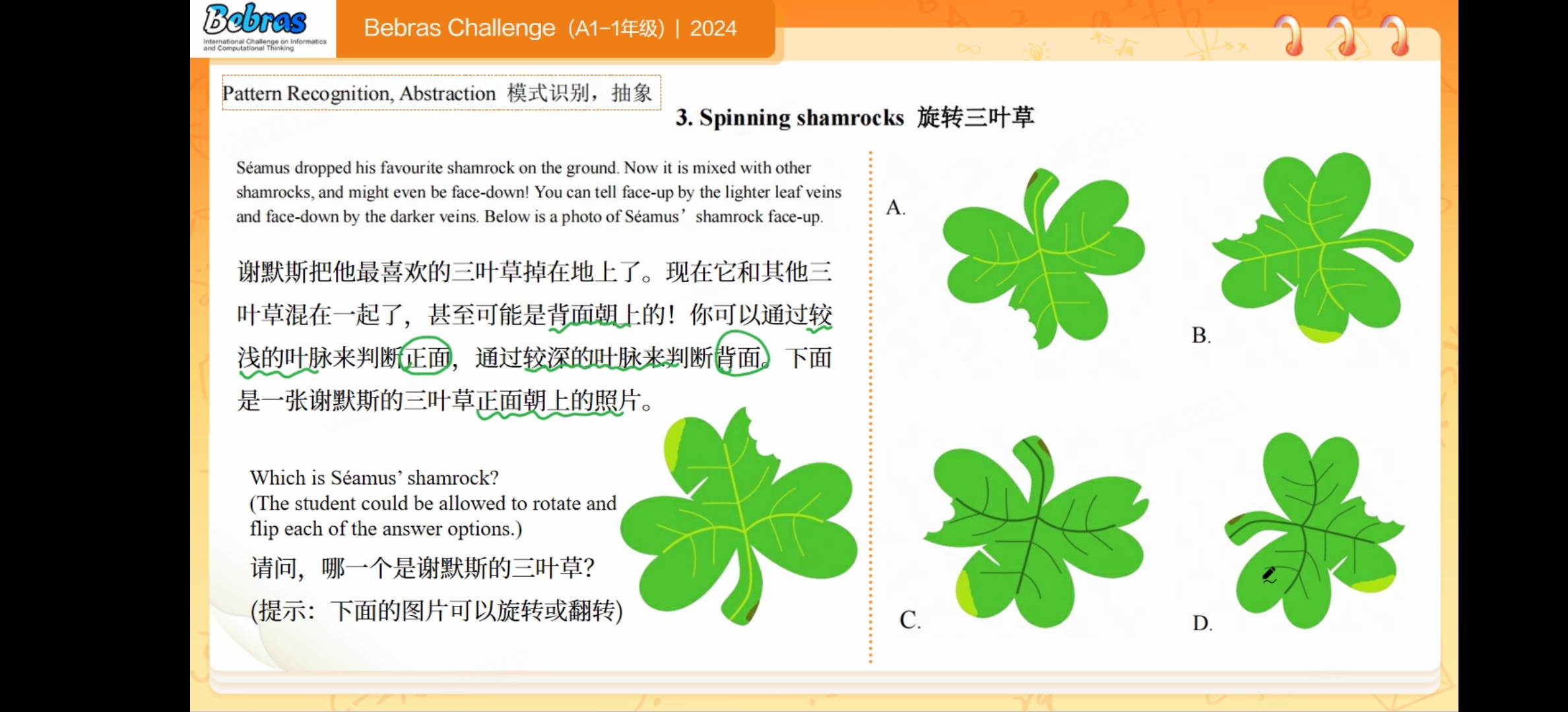 Bebras能够将复杂的问题拆解为更小、更易处理的部分。通过抽象表达,他们能够识别和提取问题的关键要素,从而更有效地进行分析与解决。