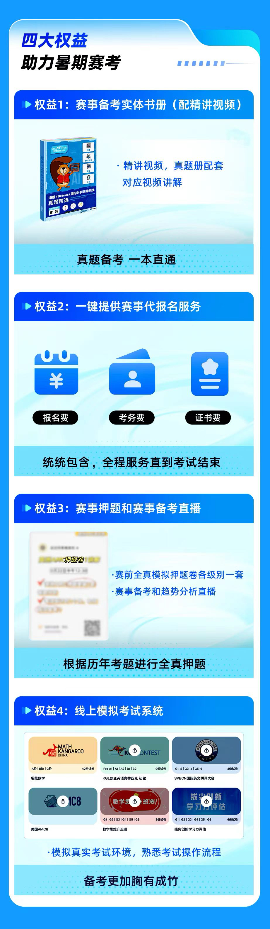 比赛无需编程基础,是数学逻辑思维的底层训练,也可以做为孩子是否具备编程学习潜能的前测,为编程学习思维助力。同时也是新课标下数学开拓视野题型的有效拓展。