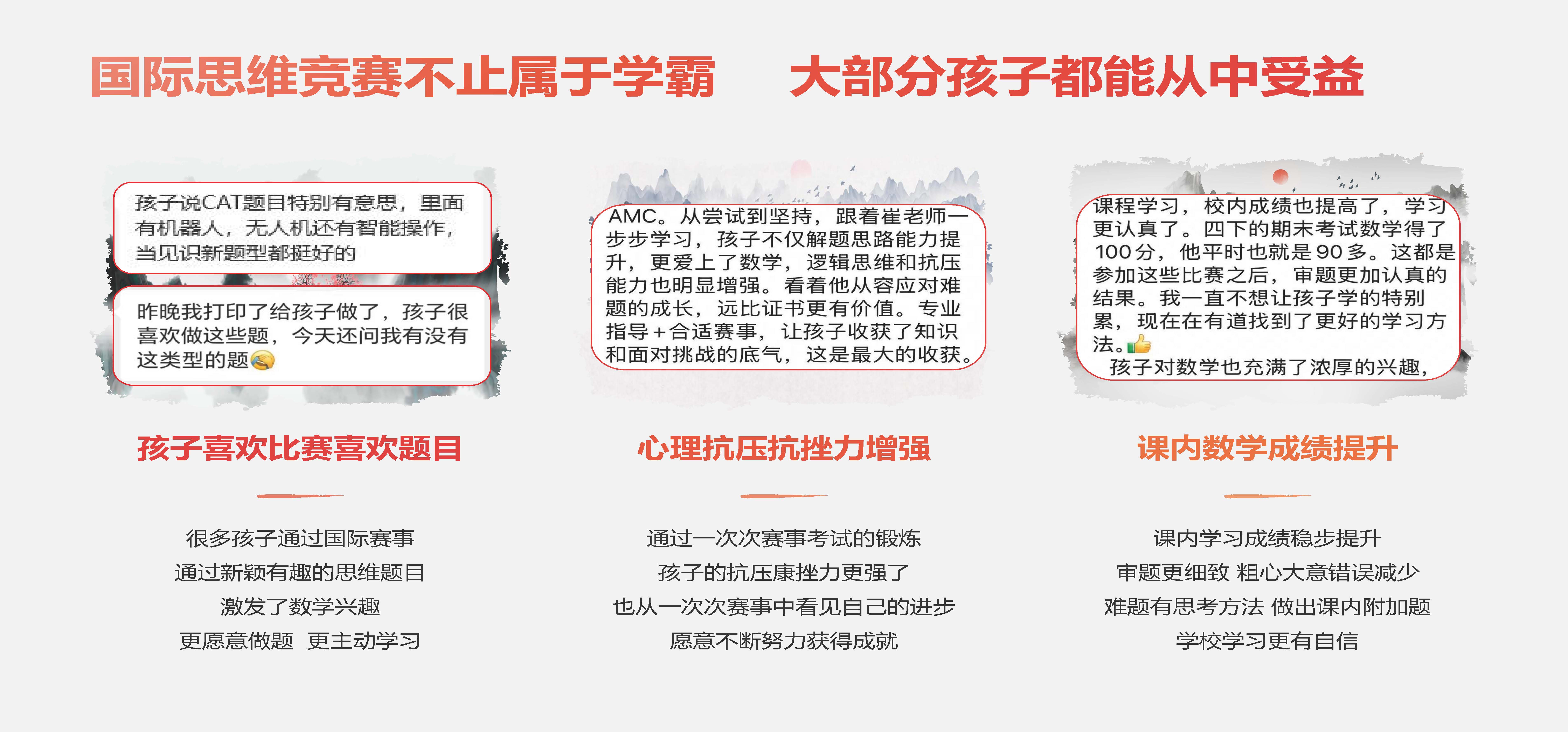 咱们现在国内现在几乎没有思维选拔测评,在校内区分度小的当下,用国际竞赛测试,可以知道孩子真实水平,知道孩子在全国范围内、甚至全世界范围内,数学处于什么水平。
