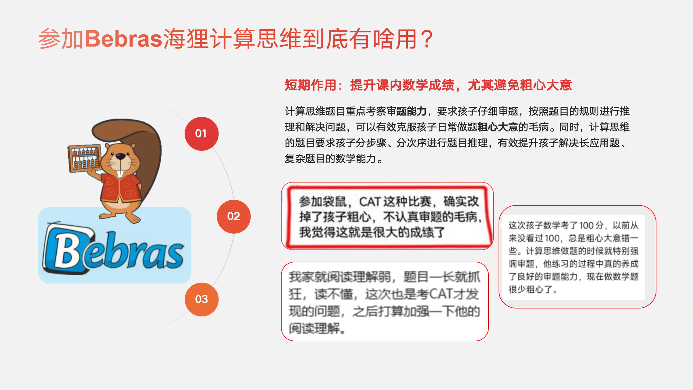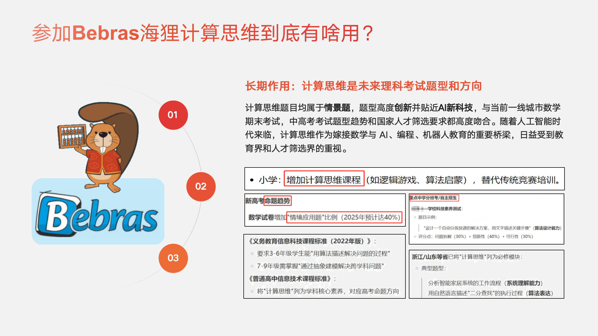 1⃣️海狸注重考察💻计算思维,在巩固数学基础,补充校内数学的基础上,培养孩子人机交互能力